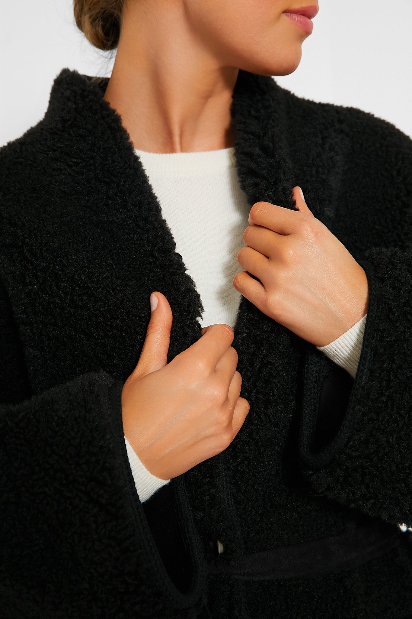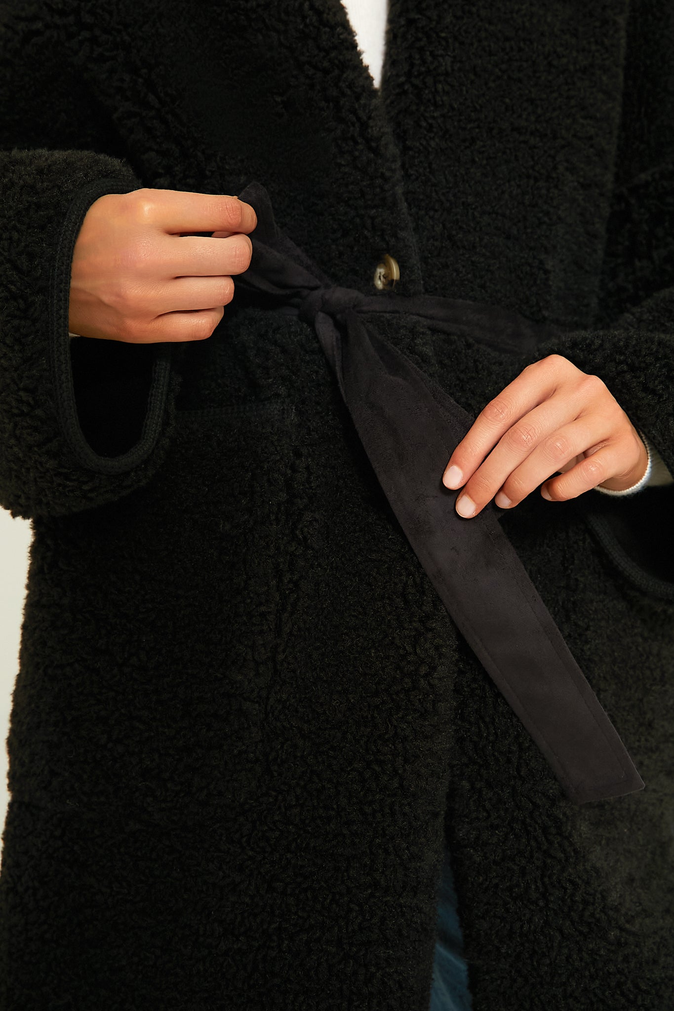 - Removable self-tie belt (included)