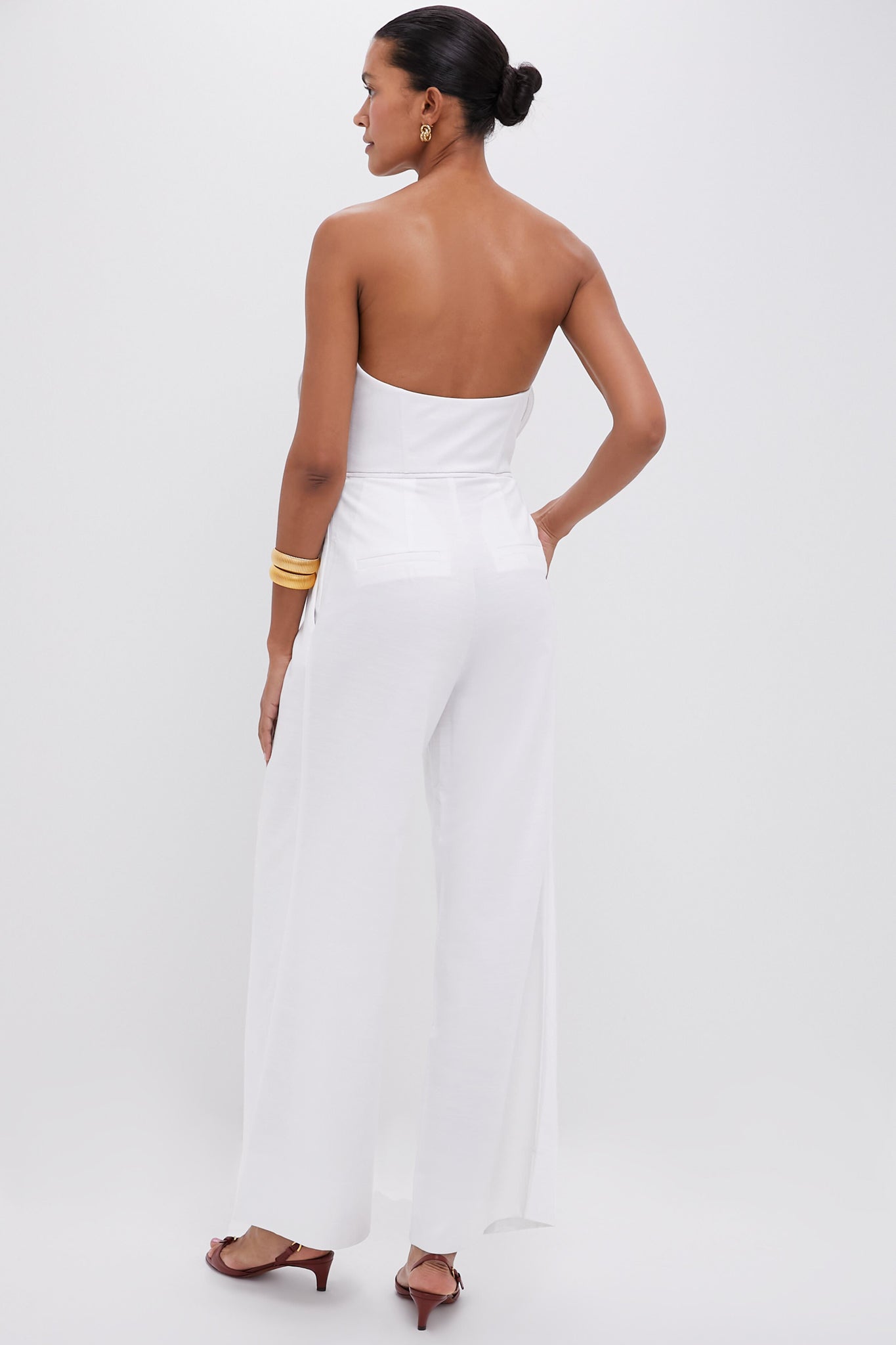 The A Flor de Piel is a strapless jumpsuit made of off-white tencel. It is a unique and elegant design that reflects pure elegance. Style with heels and pearl earrings for dinner dates. or with sandals and a sun hat for strolling around town with the girls.