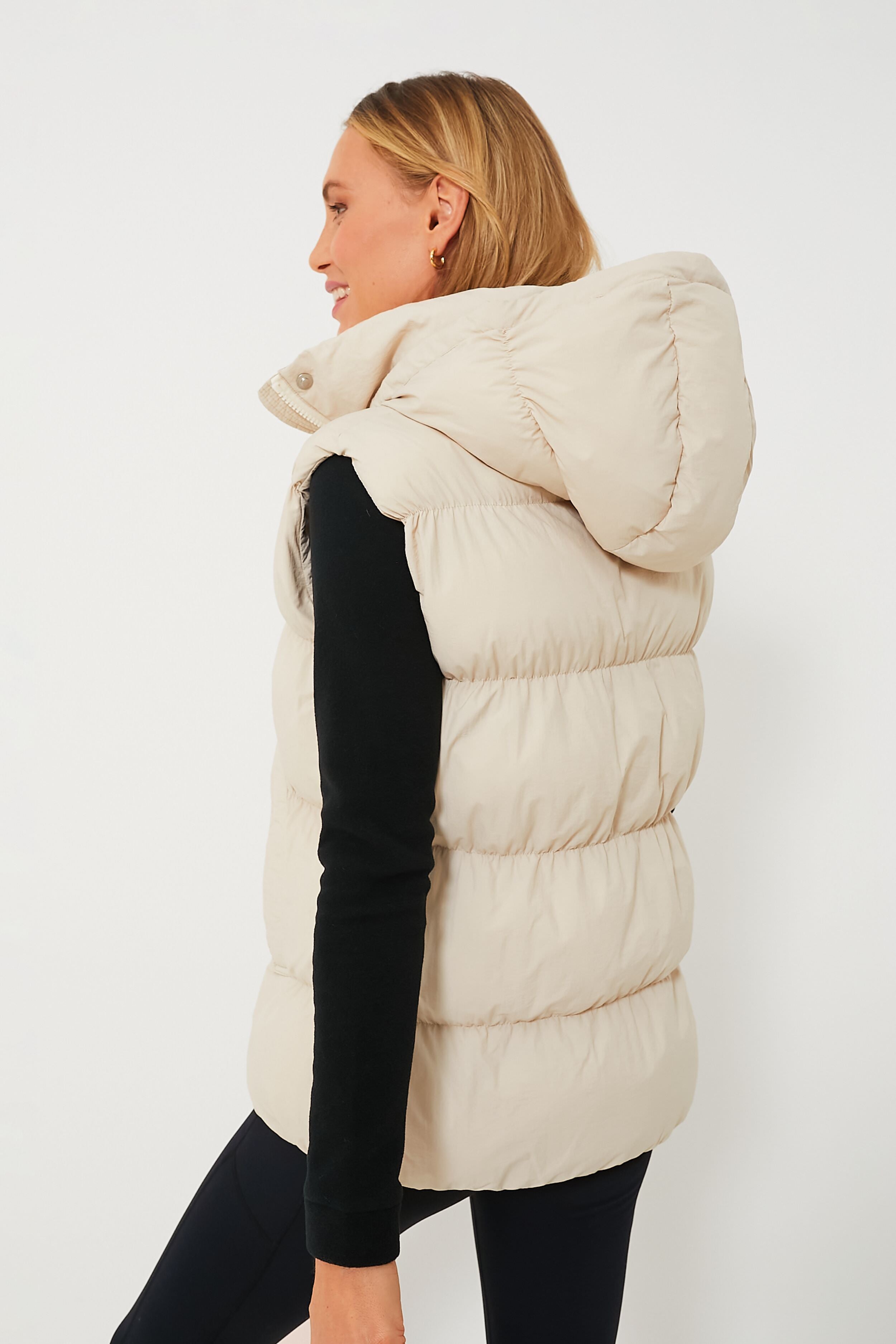 We love a good puff over here. and the Panna 9190 Vest is the chicest way to do the sleeveless look. Thoughtful details like an attached drawstring hood. a stand collar to keep out the chill. and a snap front placket to conceal the front zipper combine with a luxe cream hue for the perfect urban-outdoorsy vibe. Layer it over a turtleneck and pair with your favorite booties for an effortlessly elevated styling that will have you feeling cozy no matter where the day takes you.