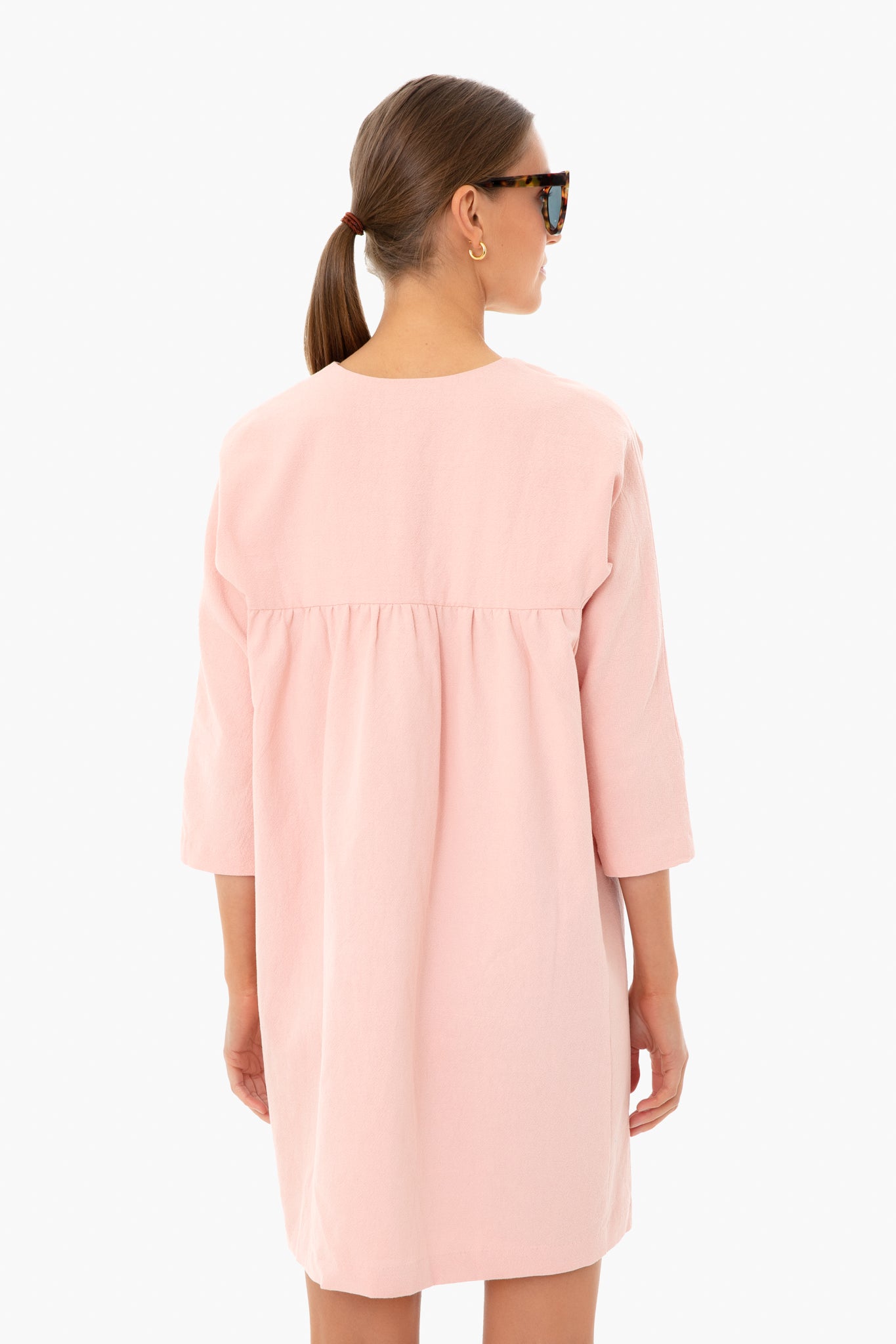 This easy shift dress features quarter length sleeves. button down. and baby doll silhouette. is casual and playful. The Fallon Dress will instantly go from day to night and is a must have for resort through the summer!