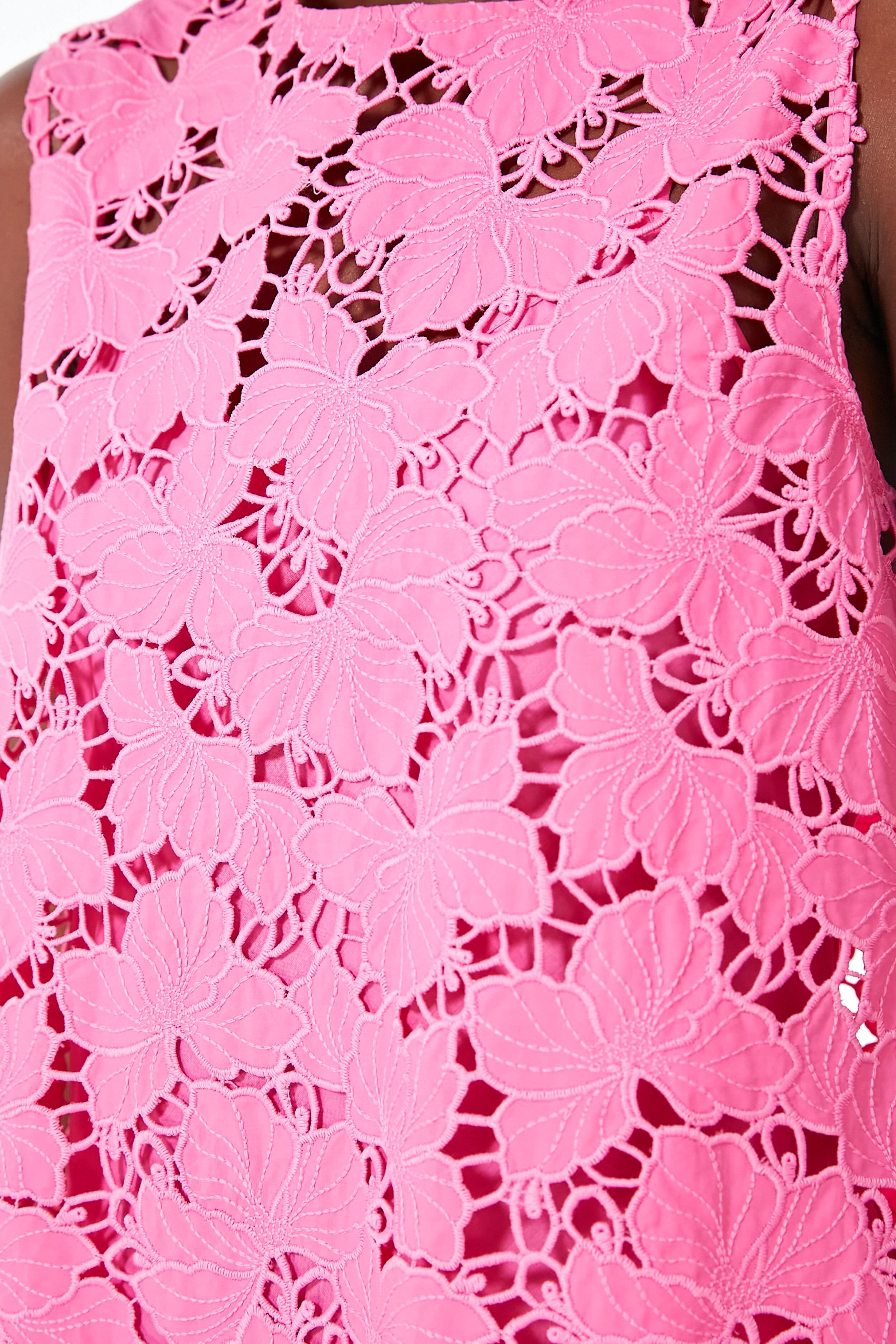 Polished and effortless. this Pink Mini Dress is a versatile stunner. Cut from 100% cotton lace for an intricate feel and soft structure. it has a suits-all crew neck and shift silhouette that falls into a leg-lengthening scalloped hemline. Pack it in your carry-on and take it from the beach to the bar. and everywhere in between.