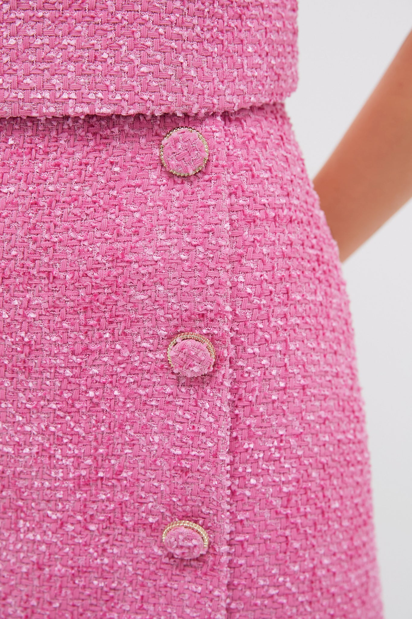 The Pink Tweed Andi Mini Skirt blends a chic silhouette with an eye-catching tweed texture to create a look that exudes sophisticated femininity. Pair with a white button down and ballet flats or with the matching Pink Tweed Annabelle Top and heels for date night!