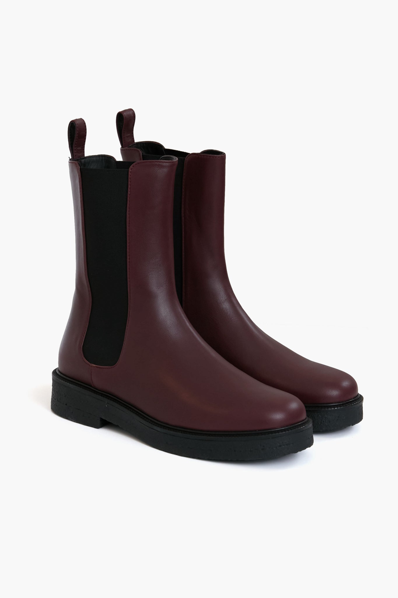 The Plum Palamino Boot is made from deep red-purple leather and features an elasticized gore shaft. comfortable rubber sole. and a back hangloop tab. The perfect combination of sleek and chunky. this chic pair will carry you through seasons and years to come. From denim and fleeces to skirts and chunky knits. these are ideal for any adventure.
