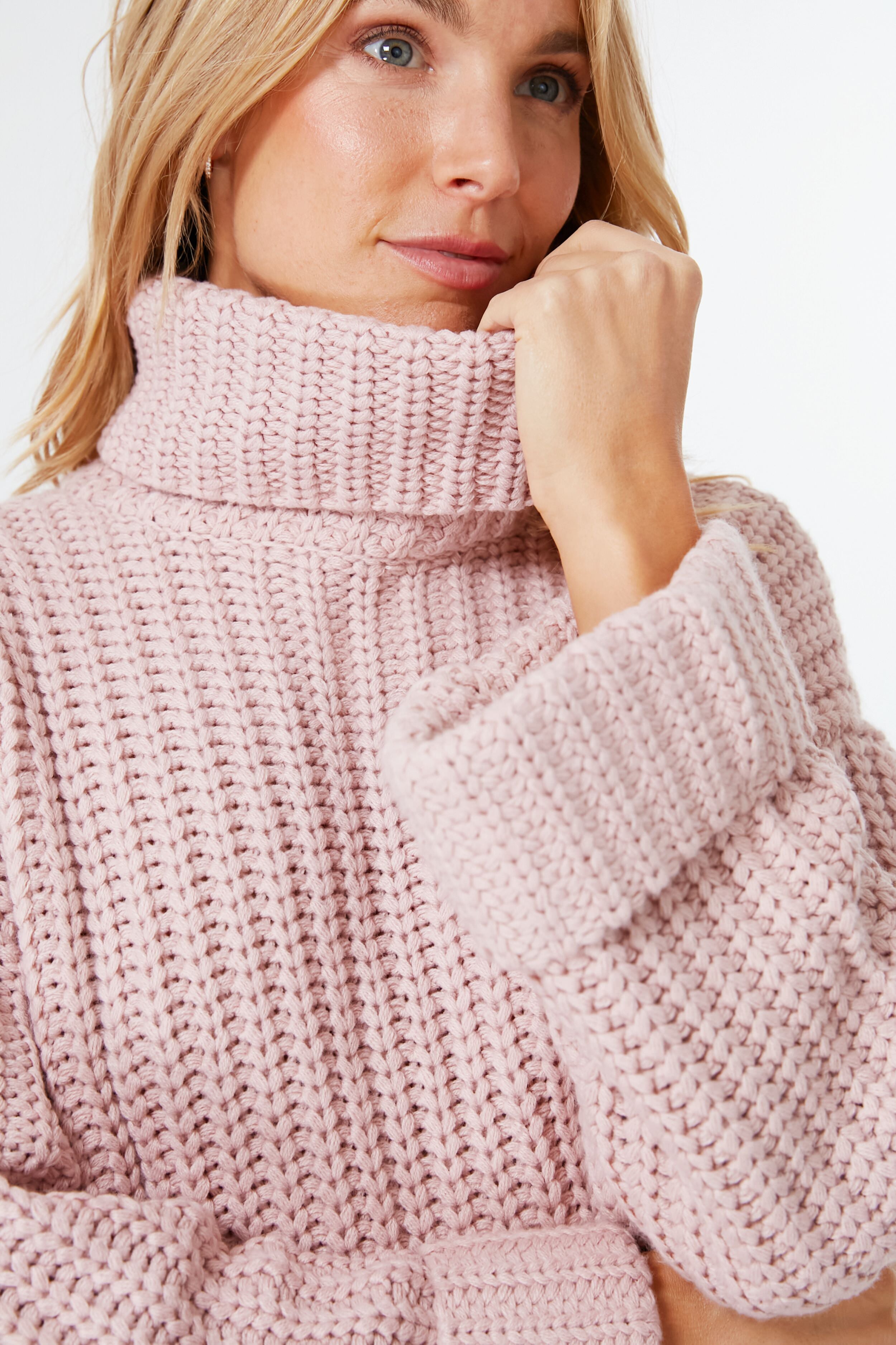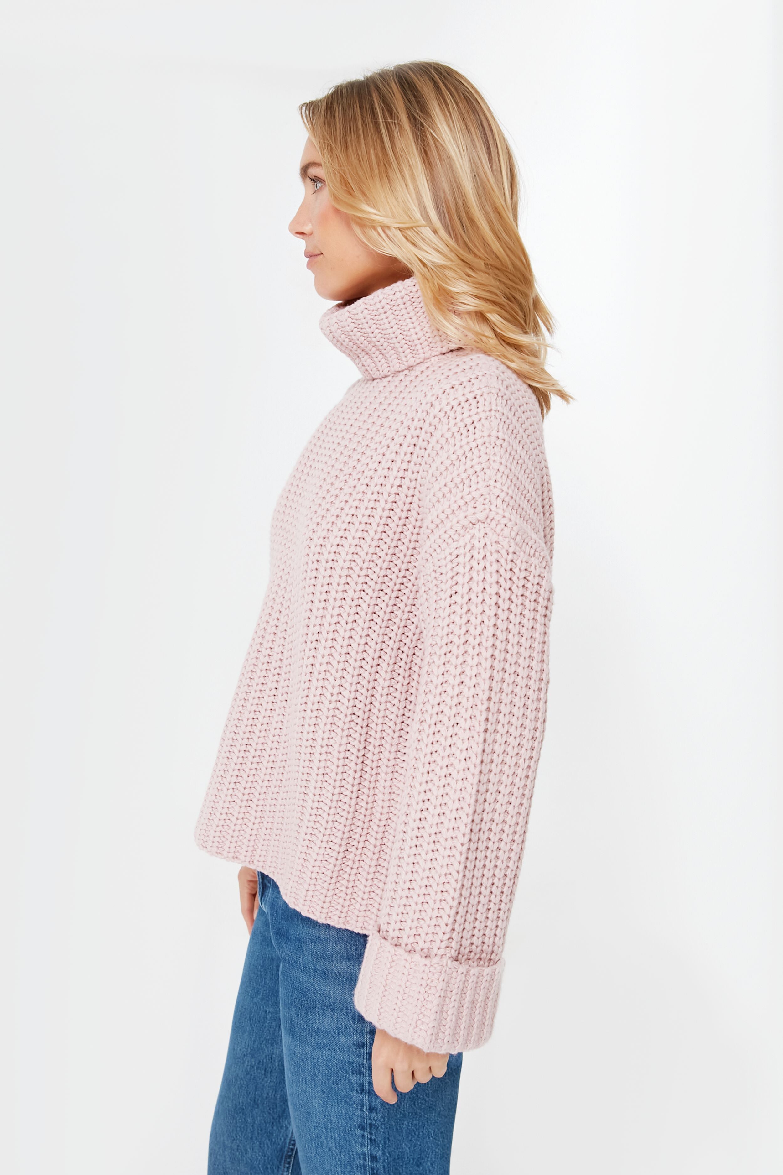 The Wide Sleeve Turtleneck is a luxurious chunky knit with a retro silhouette. The oversized cuffed sleeves. drop shoulder details. and relaxed fit is perfect for staying cozy and looking your best. Opt for boots and a hat for chilly days or denim and sunglasses for weekend farmers' markets.