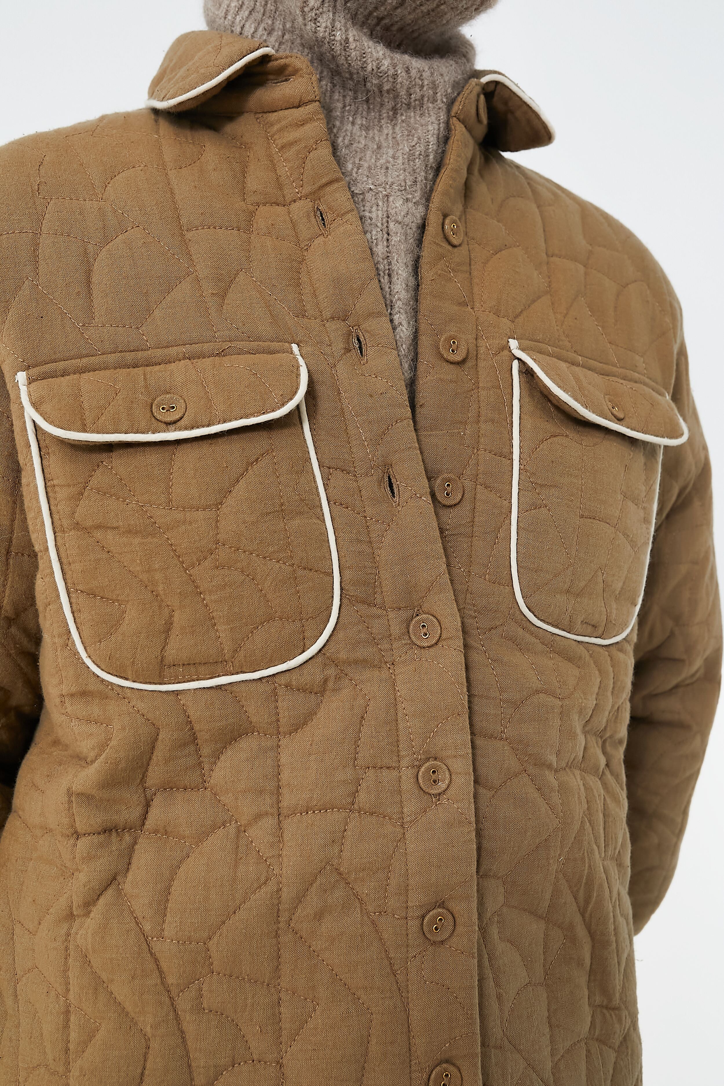 The perfect lightweight yet cozy outer layer to transition across seasons with you. the Tannin Kyoto Jacket is an obvious favorite. With its uniquely quilted texture. polished collar. patch pockets. and fun contrasting trim for a bright pop. you'll reach for this snug silhouette on repeat as the temps drop. Layer it over your favorite tee with denim to hit the farmers' market. or pair with a turtleneck and boots to grab lunch with your girlfriends.