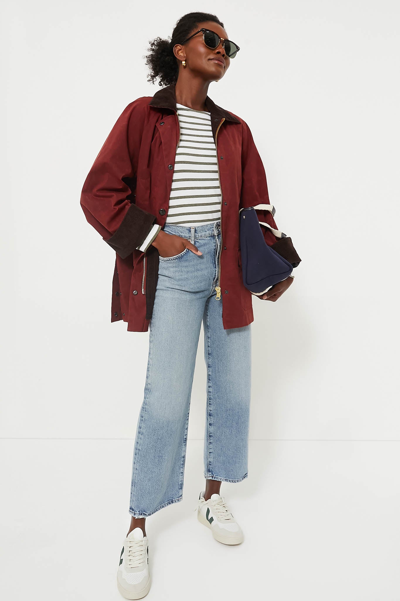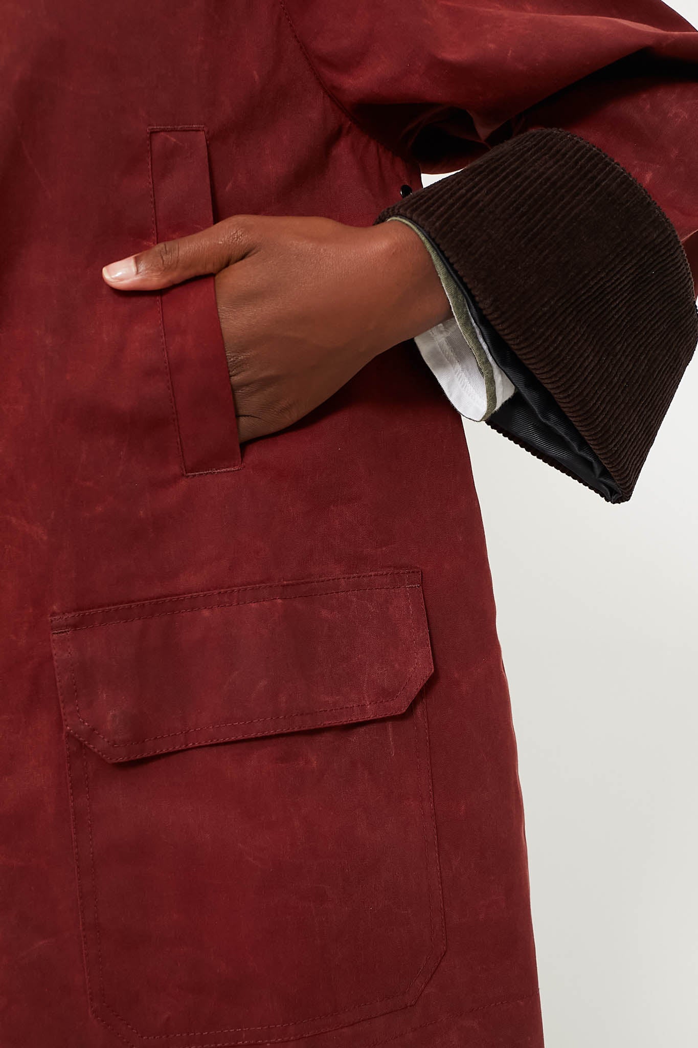 Add a pop of color to your outfit with the Chiltern Street Jacket. A wax cotton outer with ribbed brown lining. this chic style checks all of our boxes. Pair with chunky sweaters and denim or over a mini dress with high boots!