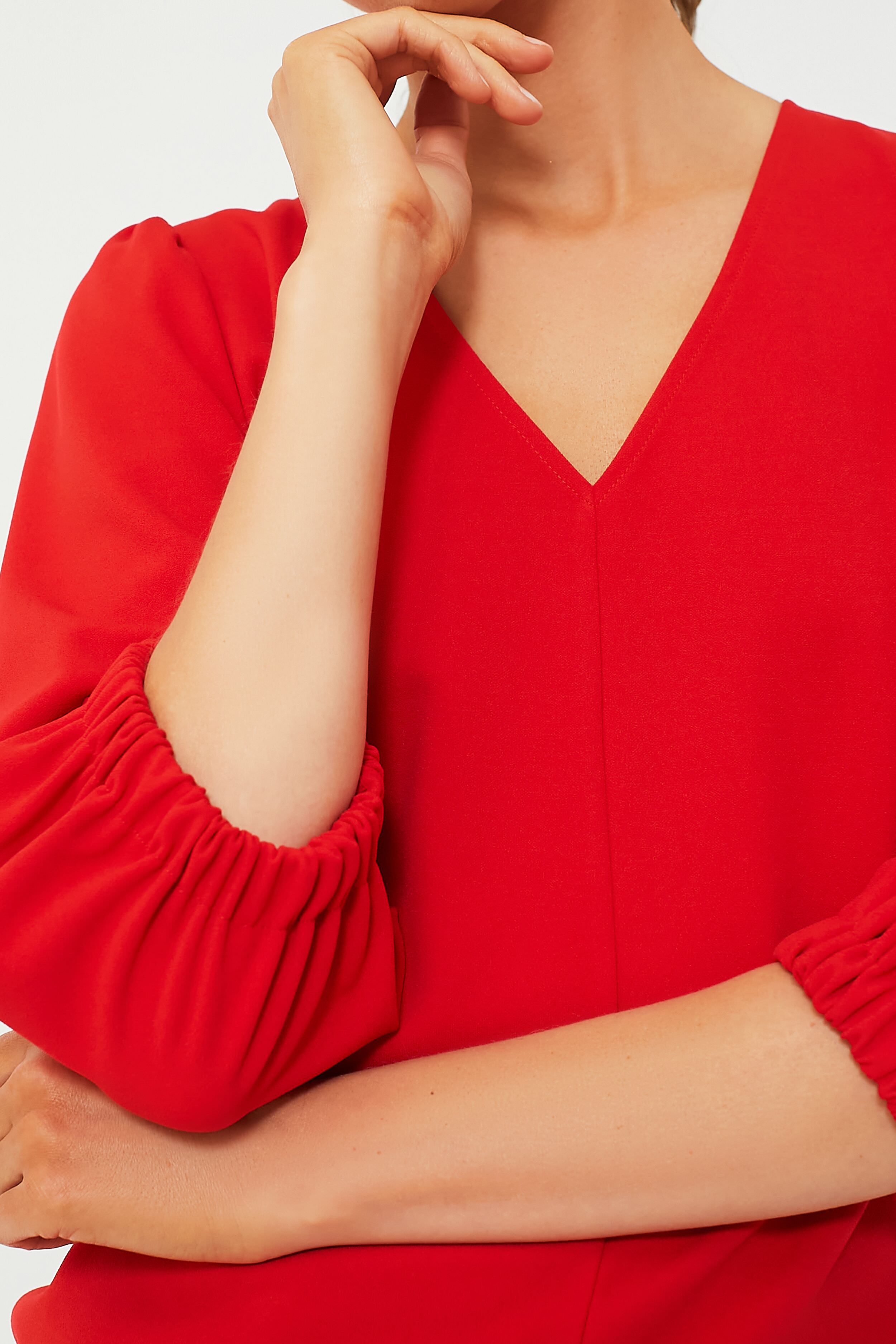 We are loving rich colors right now. which is why we are obsessed with the Hollis Top. Featuring a punchy red pop. a V-neckline. and slightly puffed sleeves. this sophisticated number is perfect for an elevated daytime look or for cocktail hour. We are pairing it with denim and sandals for an effortless warm weather look.