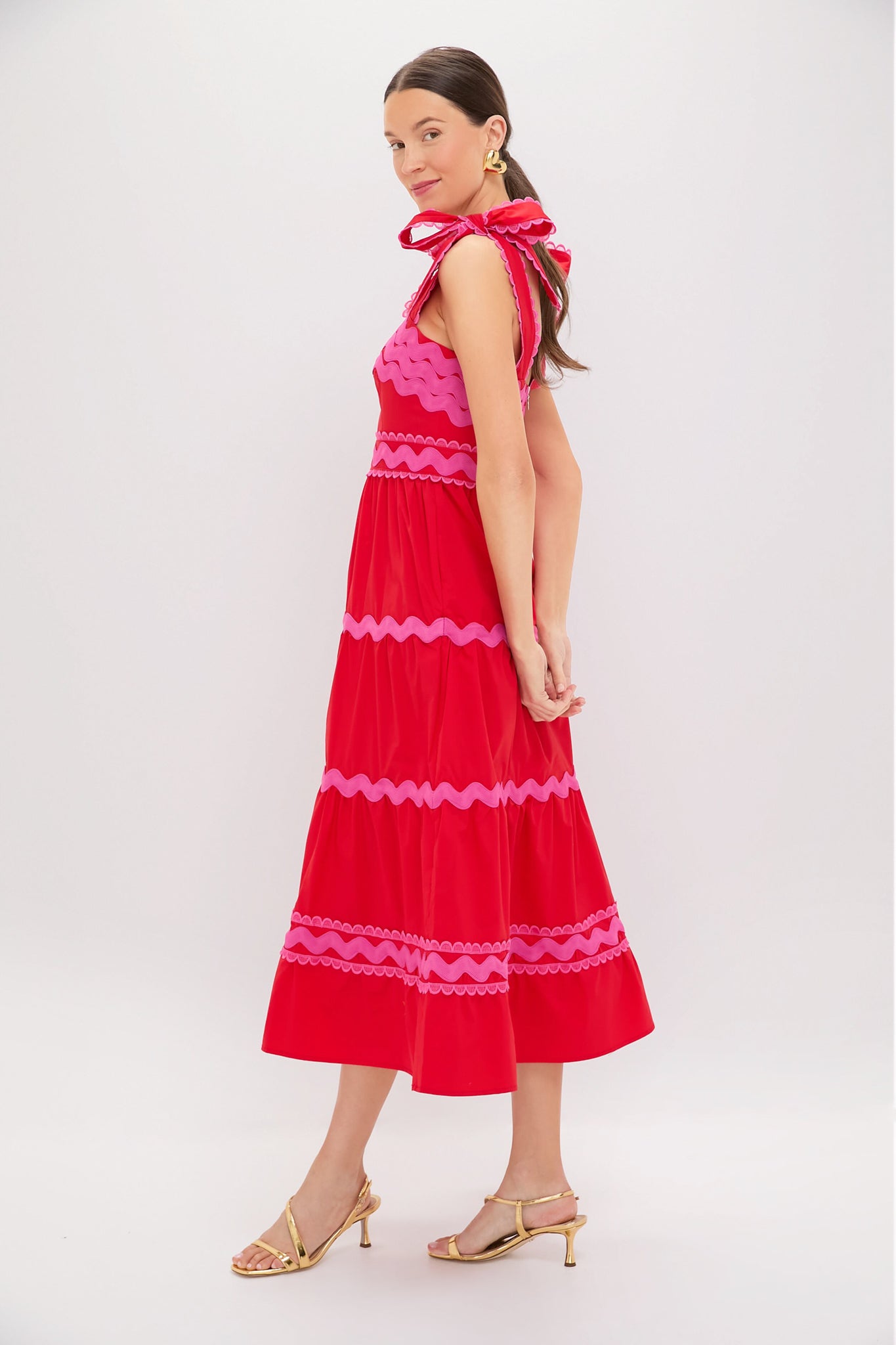 The Red Jade Dress is a vibrant statement piece unlike any other. With self-tie straps. embroidery detailing throughout. and a romantic A-line skirt. this elevated midi plays on texture. shape. and color to create a dreamy look. Pair with heels and statement jewelry for a dinner party. or with sandals for a playful daytime look.