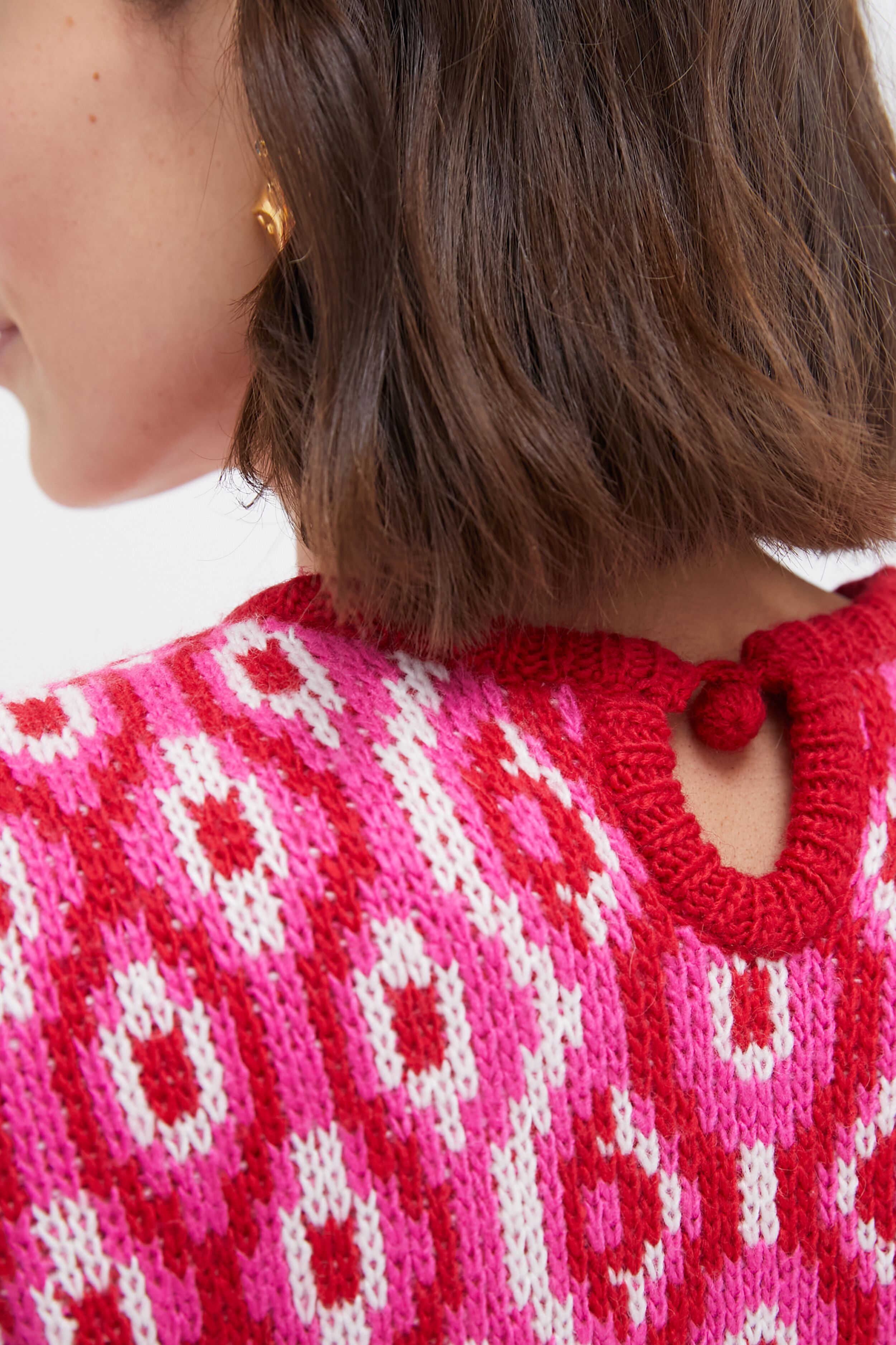 The Red & Pink Geo Knit Mara Top is the perfect piece to add to your packing list! Featuring a beautiful. vibrant knit. cropped length. and tassel detailing. this statement top will take your from day to night! Pair with the matching Red & Pink Geo Knit Mabel Midi Skirt. heels. and a clutch for a coordinated dinner outfit. or with jean shorts. sandals and a tote for day time shopping in town!