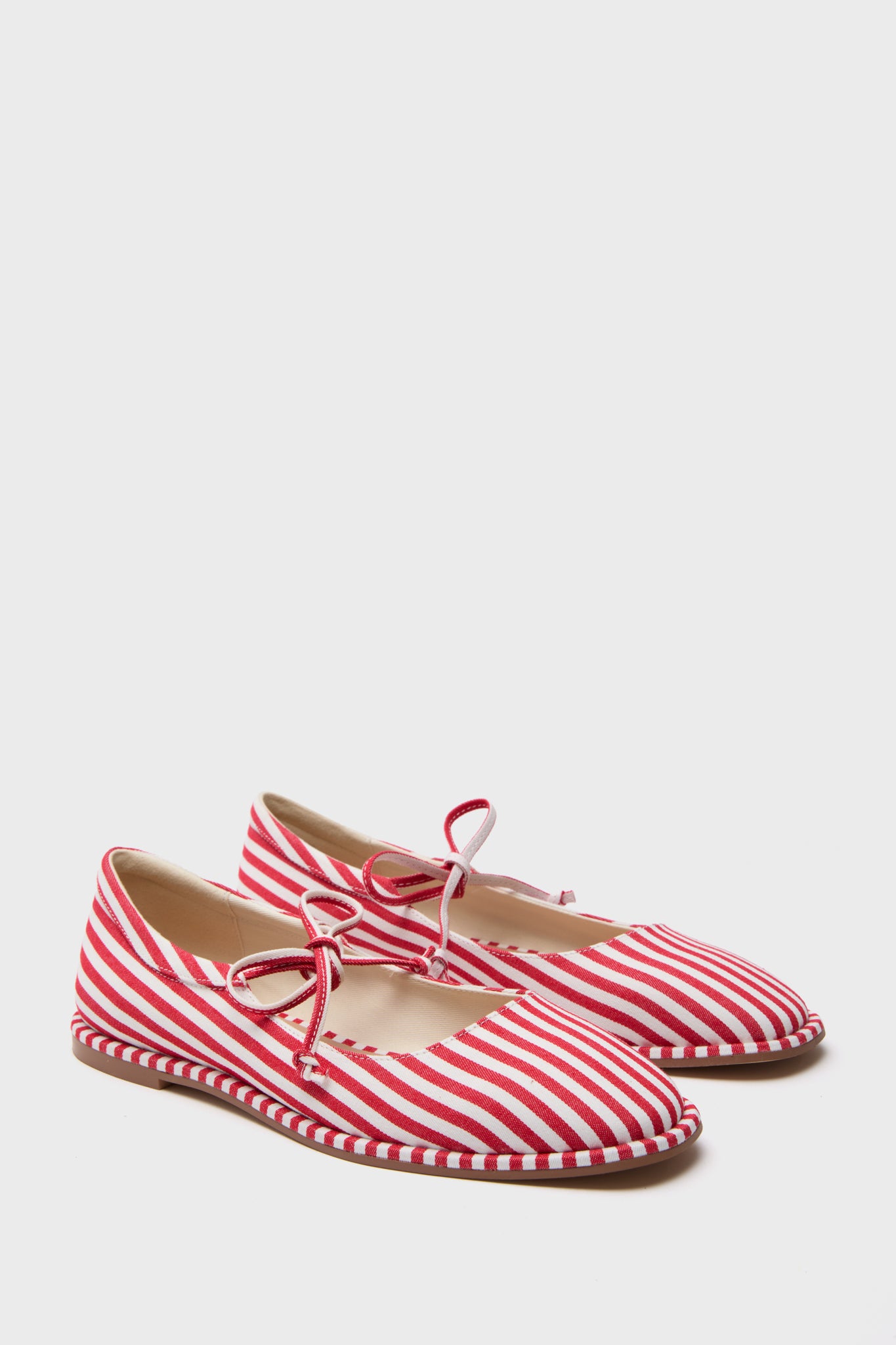 Featuring delicate bow-tie details. and a cushioned sole. the Red Stripe Gerry Flats are as eye-catching as they are wearable. Whether you're strolling through the city. heading to brunch. or adding a fun twist to your office look. these versatile shoes pair beautifully with everything from denim to flowy dresses.