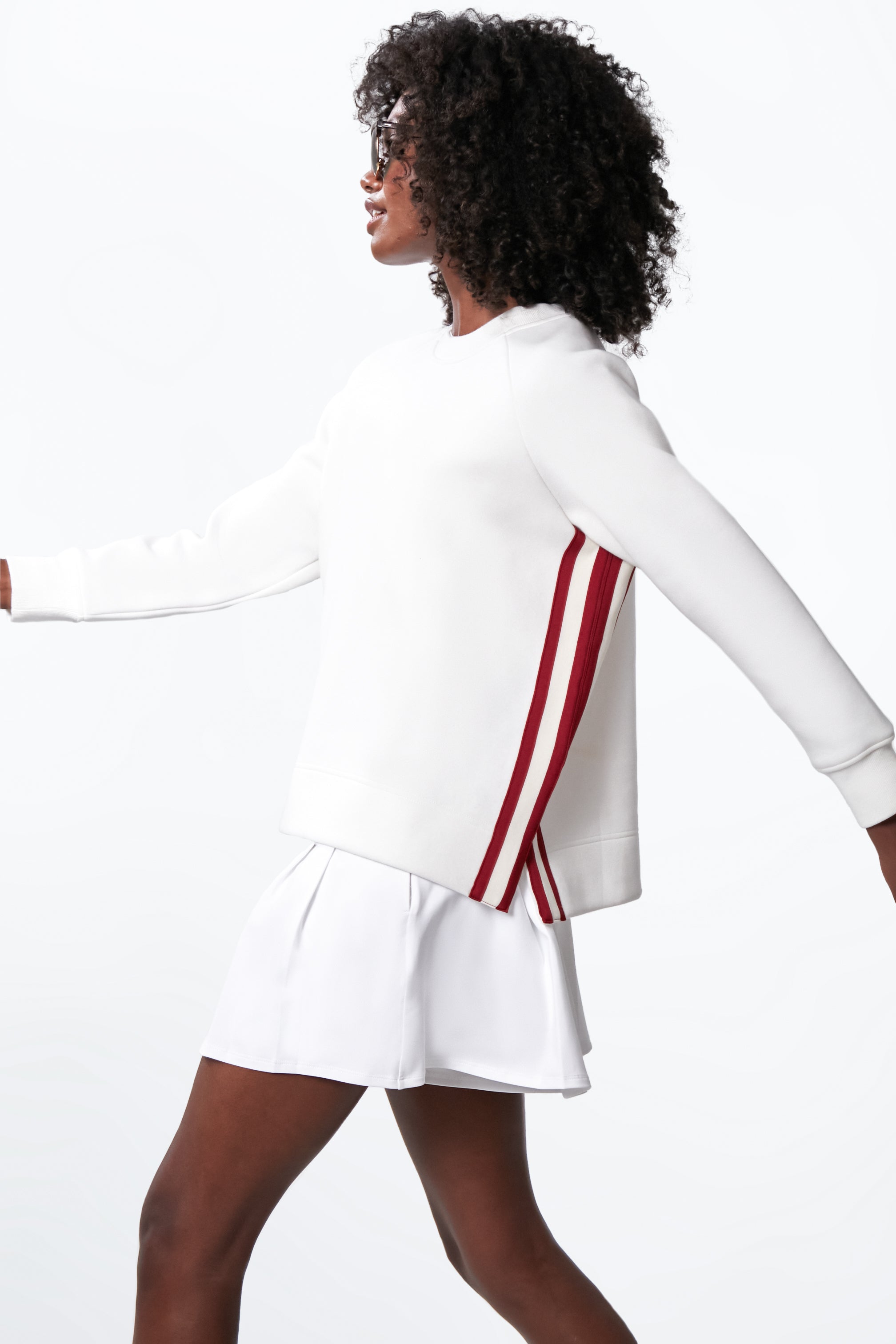 The Maggie Pullover blends performance with fashion with its comfortable scuba fabric. contrast trim. and classic raglan sleeves. So comfortable you won't want to take it off. we are planning to wear this all. year. long.