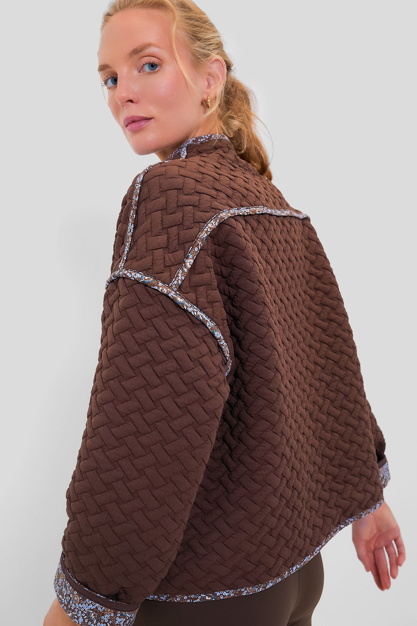 The Celeste Jacket is a cozy quilted layer that can be worn two ways. With front hook and eye clsoures. side pockets. and drop shoulders. this boxy silhouette is perfect for wearing over leggings on the way to the yoga studio or with denim and sneakers for casual weekend activities!