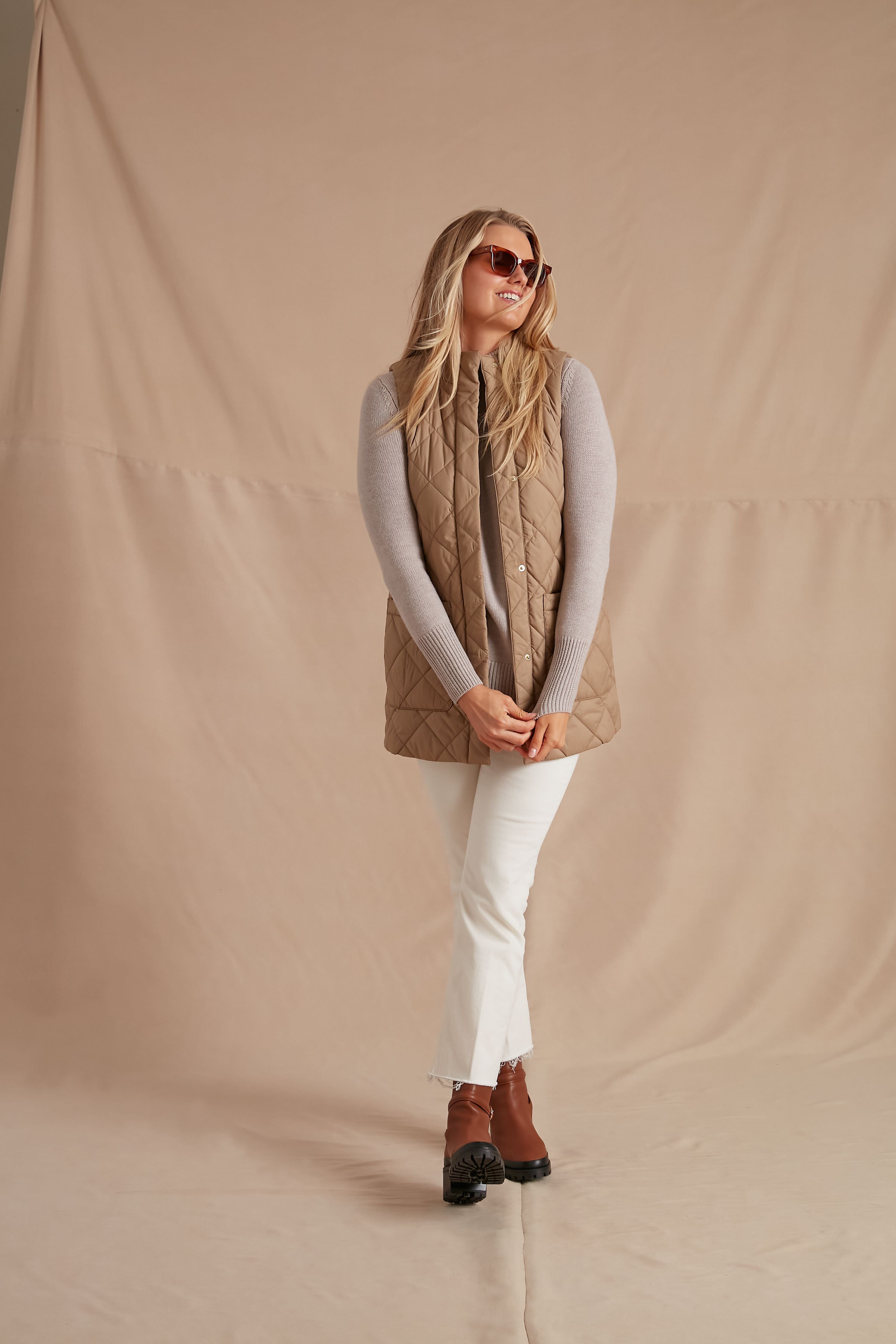 The Rosewood Cosmia Liner is the perfect lightweight layer to help you keep warm in cool weather. This diamond-quilted vest is made with generous front patch pockets at the hips and a wind-blocking stand collar. Wear this chic outerwear style over a striped long sleeve for a classic look. or with a turtleneck for an extra cozy feel.