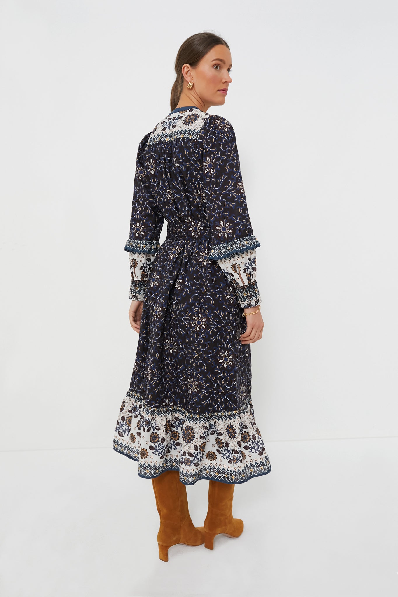 Bring effortless style to your wardrobe with the Sabina Lara Midi Dress. We love the beautiful florals on this relaxed silhouette for a boho-chic look. as well as its self-tie belt to cinch the waist. and that fabulously swingy border-printed skirt. We are pairing this piece with boots and gold accessories for the office. errands. family get-togethers. and more.