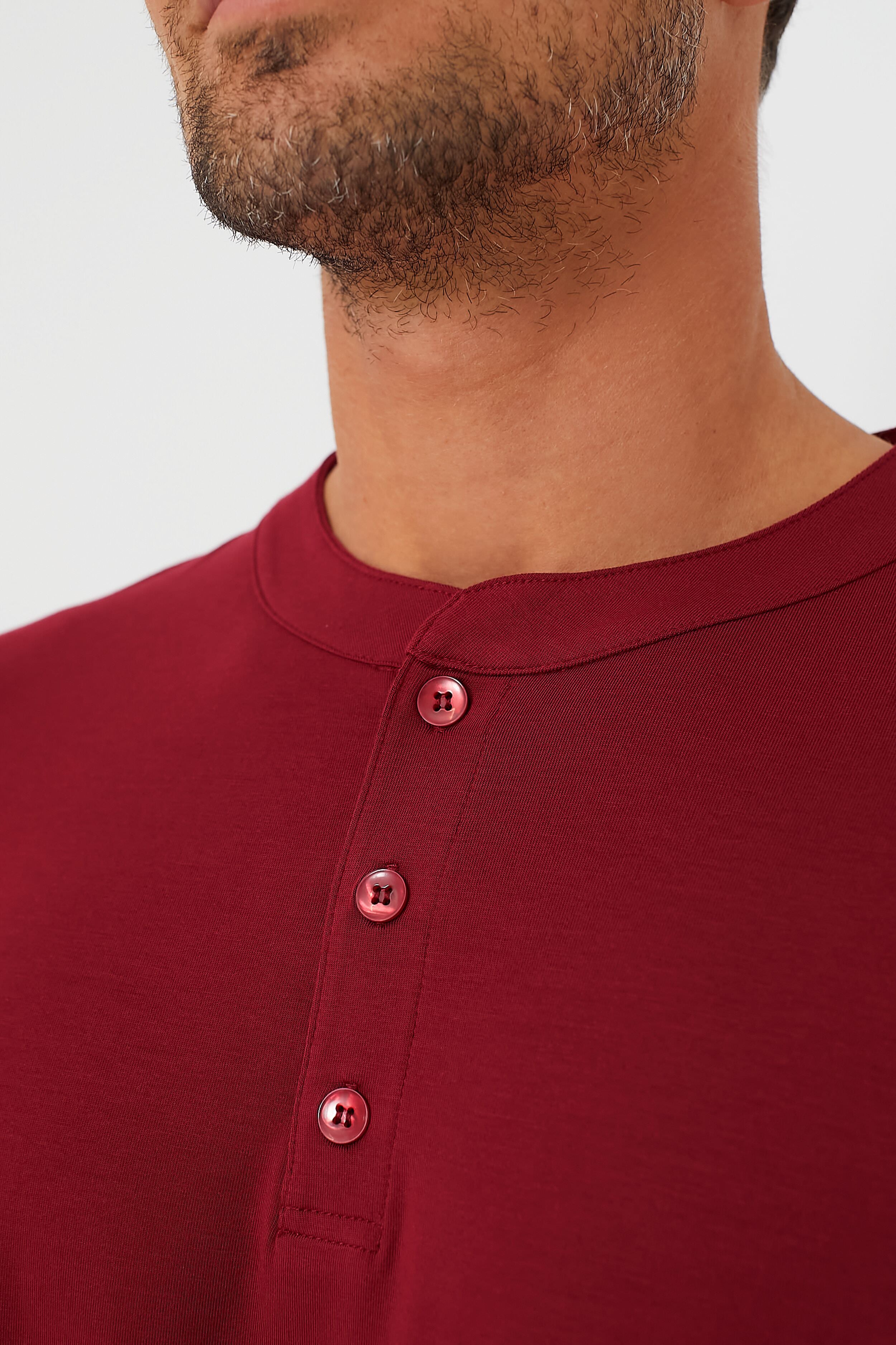 Give him a good night's sleep. every night. Eberjey's relaxing Sangria Henry Long PJ Set is cut from luxuriously soft and sustainable TENCEL™ Modal fabric. They're designed to be breathable. long lasting and machine washable. The relaxed Henry styling combines the classic look of a henley top with casual jogger-style pants for pajamas he'll want to live in. Not only does it offer all-day comfort at home. but it's a cozy packing essential he'll love to unwind in.