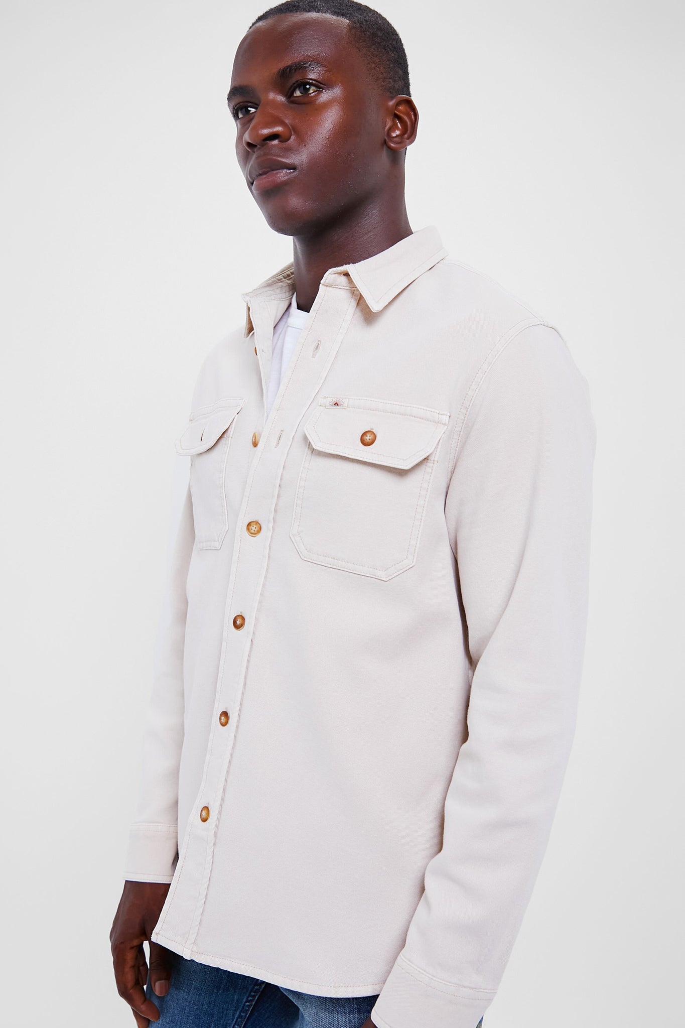 Perfectly washed with an authentic faded look. this shirt jacket is a closet must-have. Its relaxed fit and rugged texture bring an effortlessly cool vibe to any outfit. Combining both style and practicality. you'll be throwing it on over everything this season.