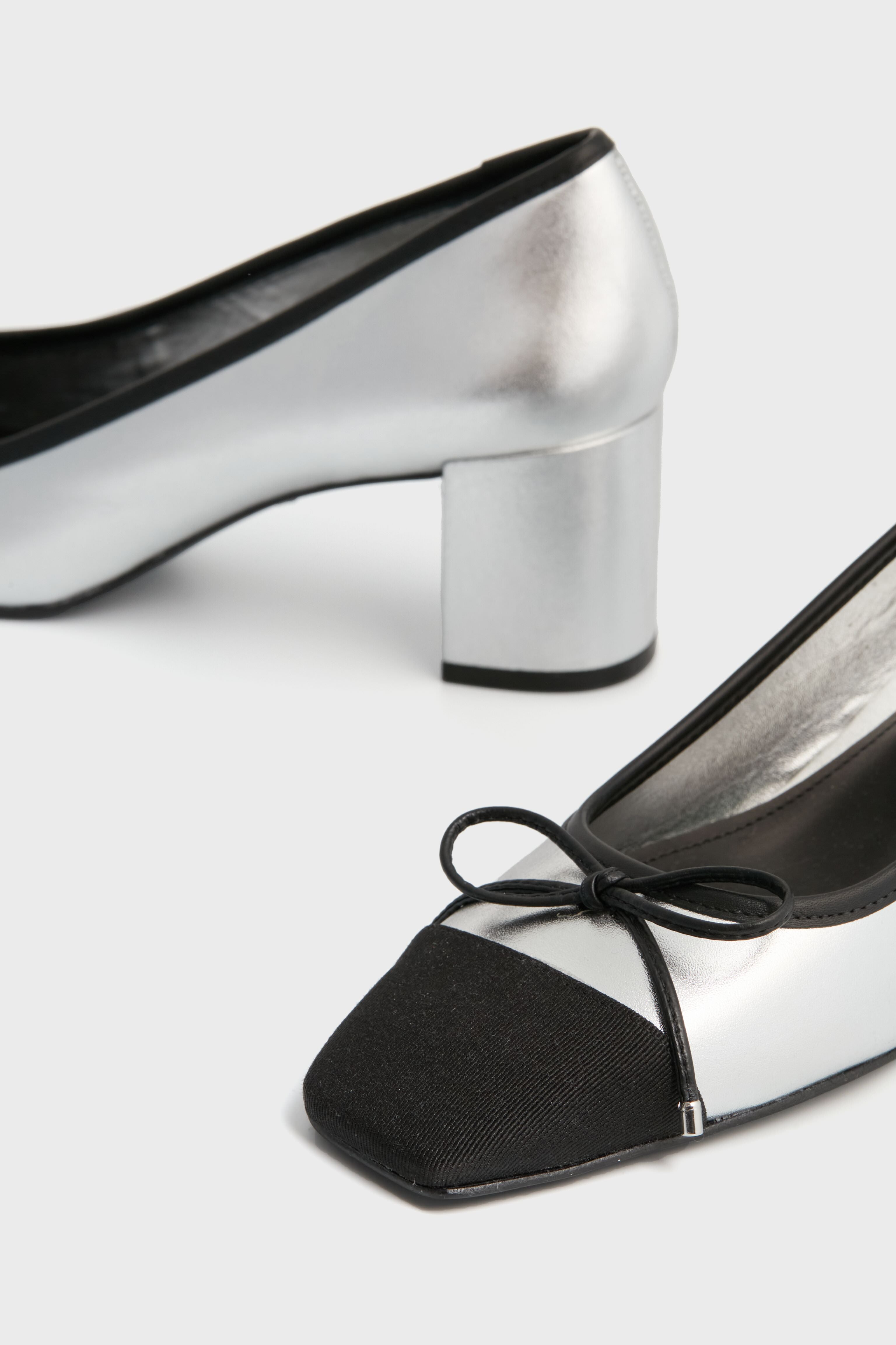 Make a statement in the Silver Arissa Block Casual Heels. These metallic beauties feature a classic block heel with a contrast cap toe and bow detail. The perfect way to add a pop to any outfit. we are pairing these with an LBD and silver jewelry or black trousers and a button-down.