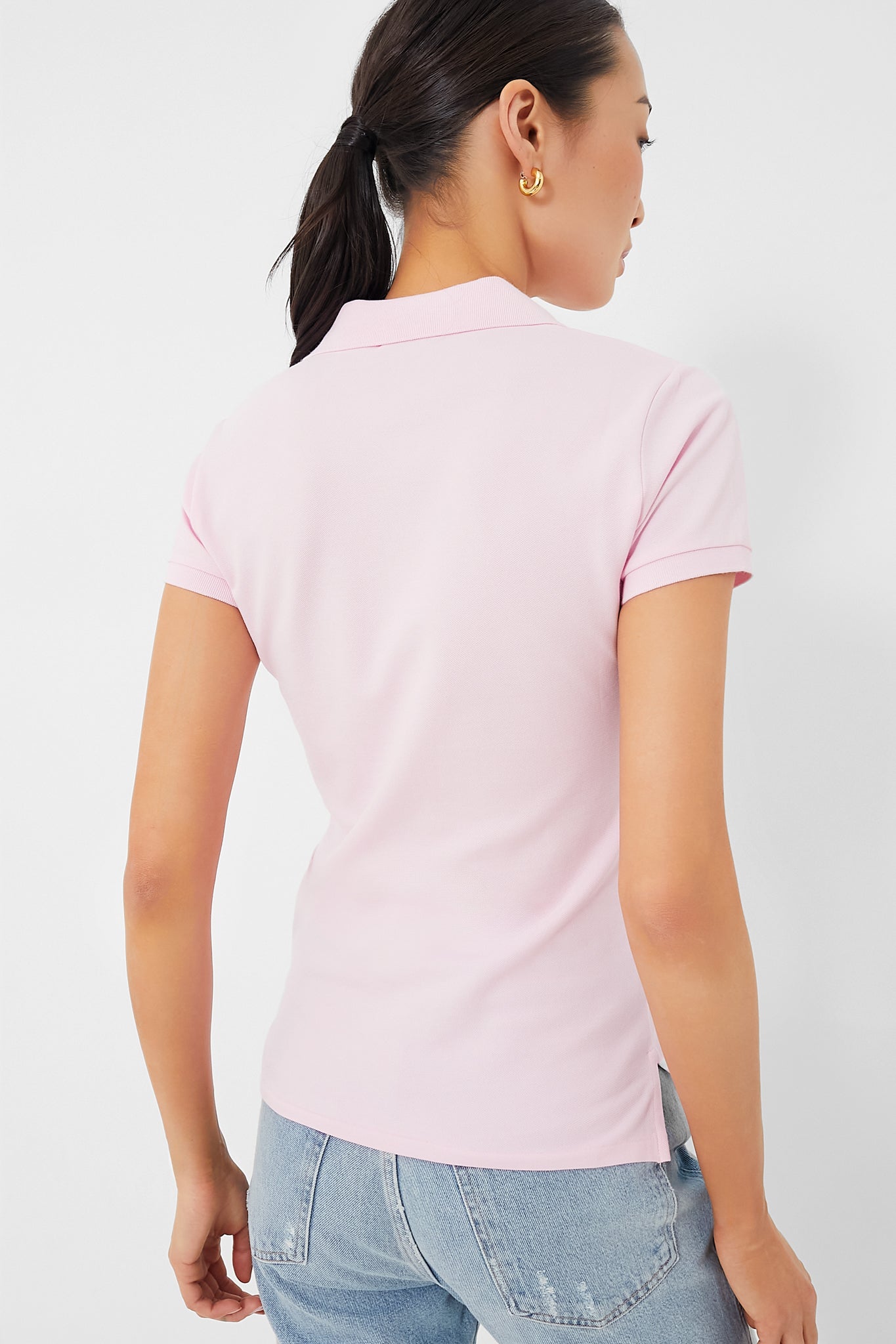 From its feminine baby pink to its meticulous construction. the Sunkissed Pink Julie Slim Polo is a chic staple that you need in your closet. This signature Polo Ralph Lauren style boasts the embroidered logo on the left chest. short sleeves. and a partial front button closure. Made from a breathable mesh fabric. you can wear this with a golf skirt on the greens or with denim and sneakers to lunch.