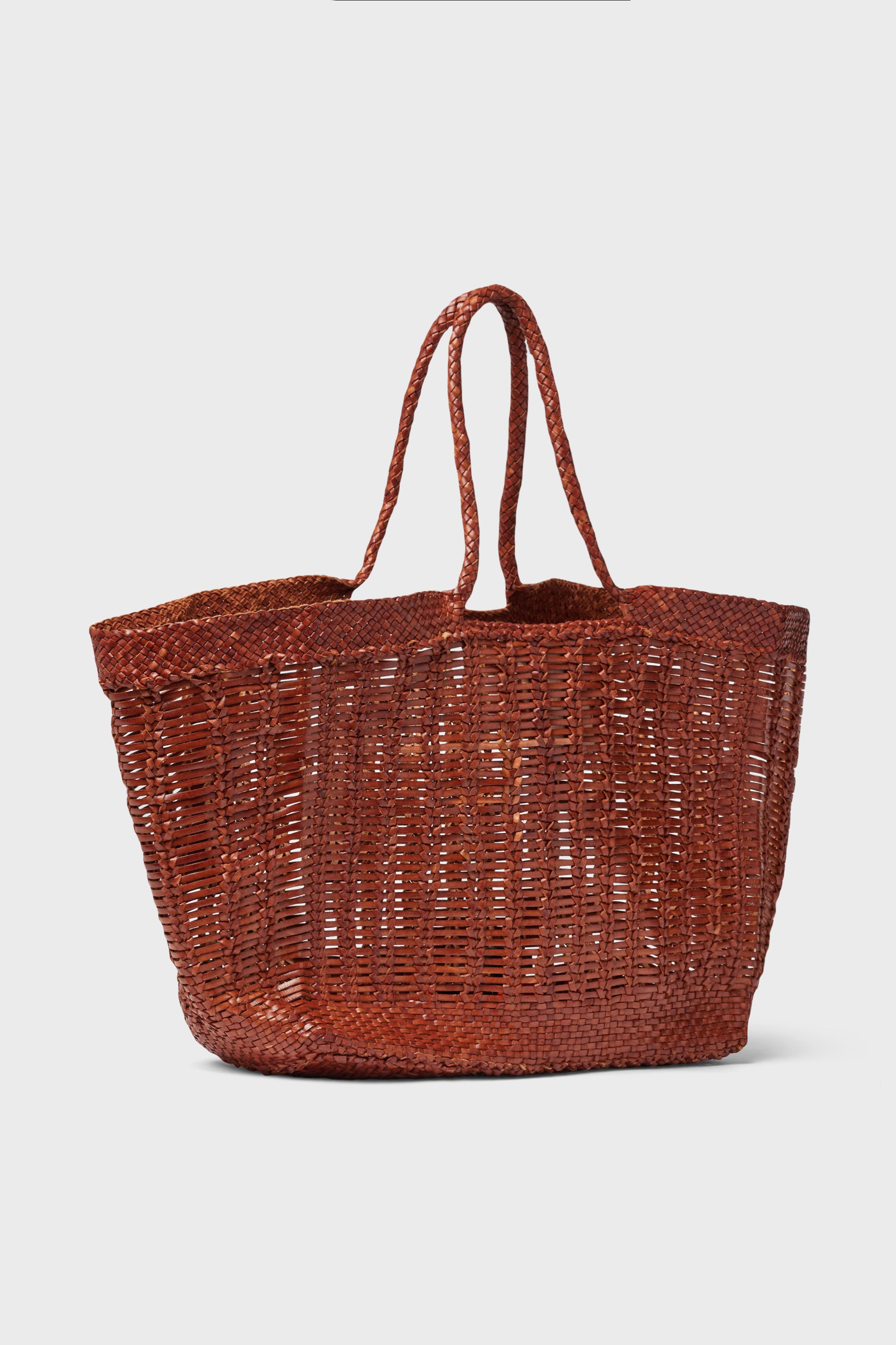 The Tan Window Shopper Tote is an open-top basket that utilizes a classic handwoven design. Spacious and hand-woven in smooth buffalo calf leather. this bag holds everything you need for a day out — whether you're wandering around your local market. heading into the office. or spending a day at the beach!