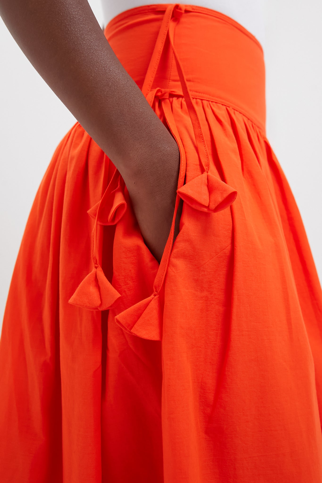 The Nathalie Skirt is romance in motion. featuring a wide. fitted waistband and a flared silhouette that flatters and flows with every step. Delicate side waist ties and airy cotton voile add a light. dreamy touch. making it the perfect piece to elevate your everyday. Pair it with the matching Francesca Top for a coordinated set that feels effortlessly poetic and beautifully put-together.