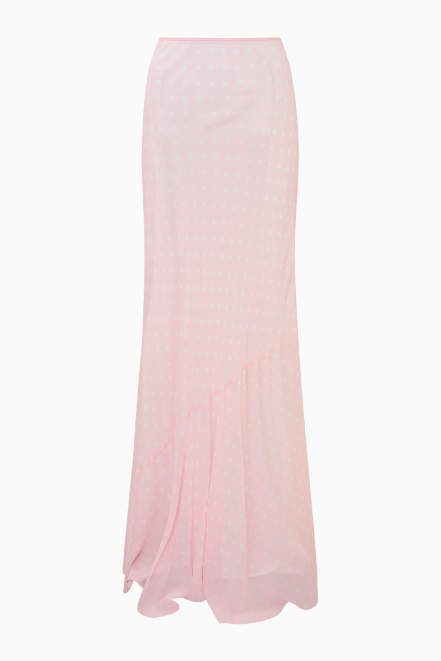 Introducing the Tesleigh Skirt. Arriving in a lightweight viscose chiffon fabric. this pretty maxi skirt features an Italian-inspired polka dot print. Flirty and feminine. the evening piece has a mermaid silhouette with a slightly slim fit. and a fixed waist.