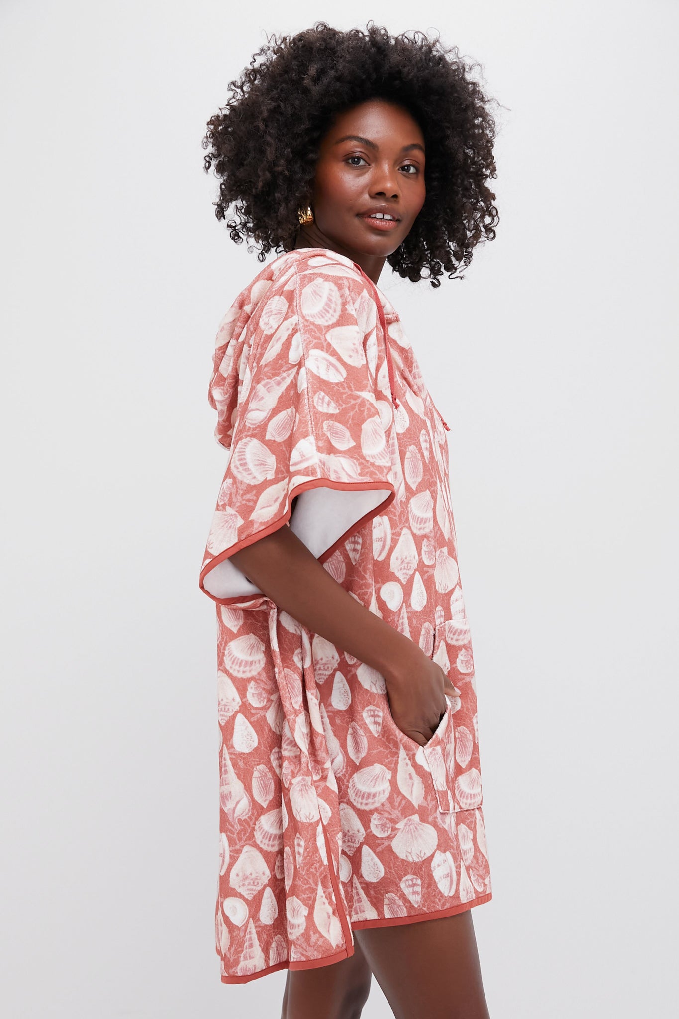 A beach towel-esque number that's perfect for throwing on after a long day in the sun? Sign us up! The Tidal Shells Cabana Coverup screams unfussy dressing with it's relaxed fit. drawstring hood. and kangaroo pocket to hold your essentials — not to mention that fabric that feels oh-so-soft against your skin. Whether you are headed to the snack shack or walking the boardwalk. this mini is warm weather ready!