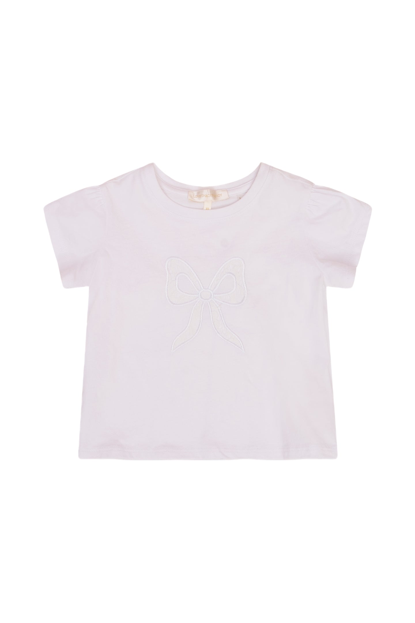 Extra cute in the Tilliat Tee. This easy top features short sleeves with scallop detailing and our signature bow on the front.