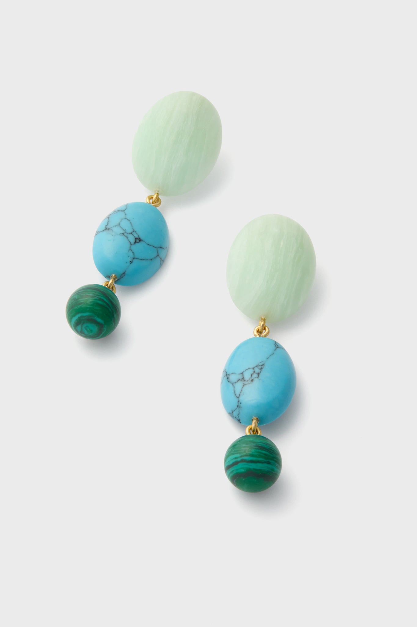 The Turquoise Mist Maris Earrings showcases a graceful trio of blue and green beads with a polished gold-tone finish. Lightweight and elegant these are perfect for sunny brunches. beachside dinners. or adding a fresh pop of color to your wardrobe. Style them with a flowy dress or a crisp white top for a breezy. effortless look!