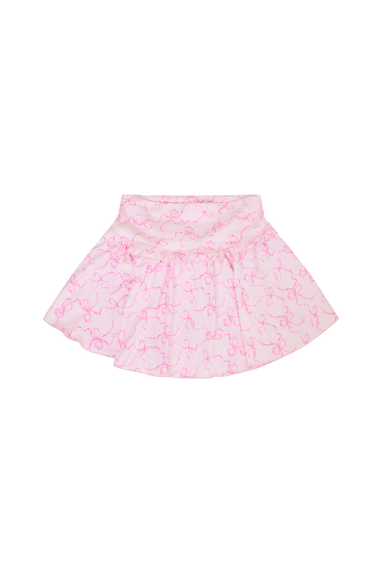 Feeling fit and flirty in the Vanina Skort. Fun and functional. this skort arrives with our signature winding bow print. A must-have essential. the easy skort features a high waistband. ruffle tiers at the yoke edges and built-in shorts. The interior short lining is designed with a breathable and lightweight mesh fabric. Ideal for any high or low impact workout from running to hiking to pilates and everything in between. this skort is designed to do it all. Pair with the Dierdra Bra for a full set.