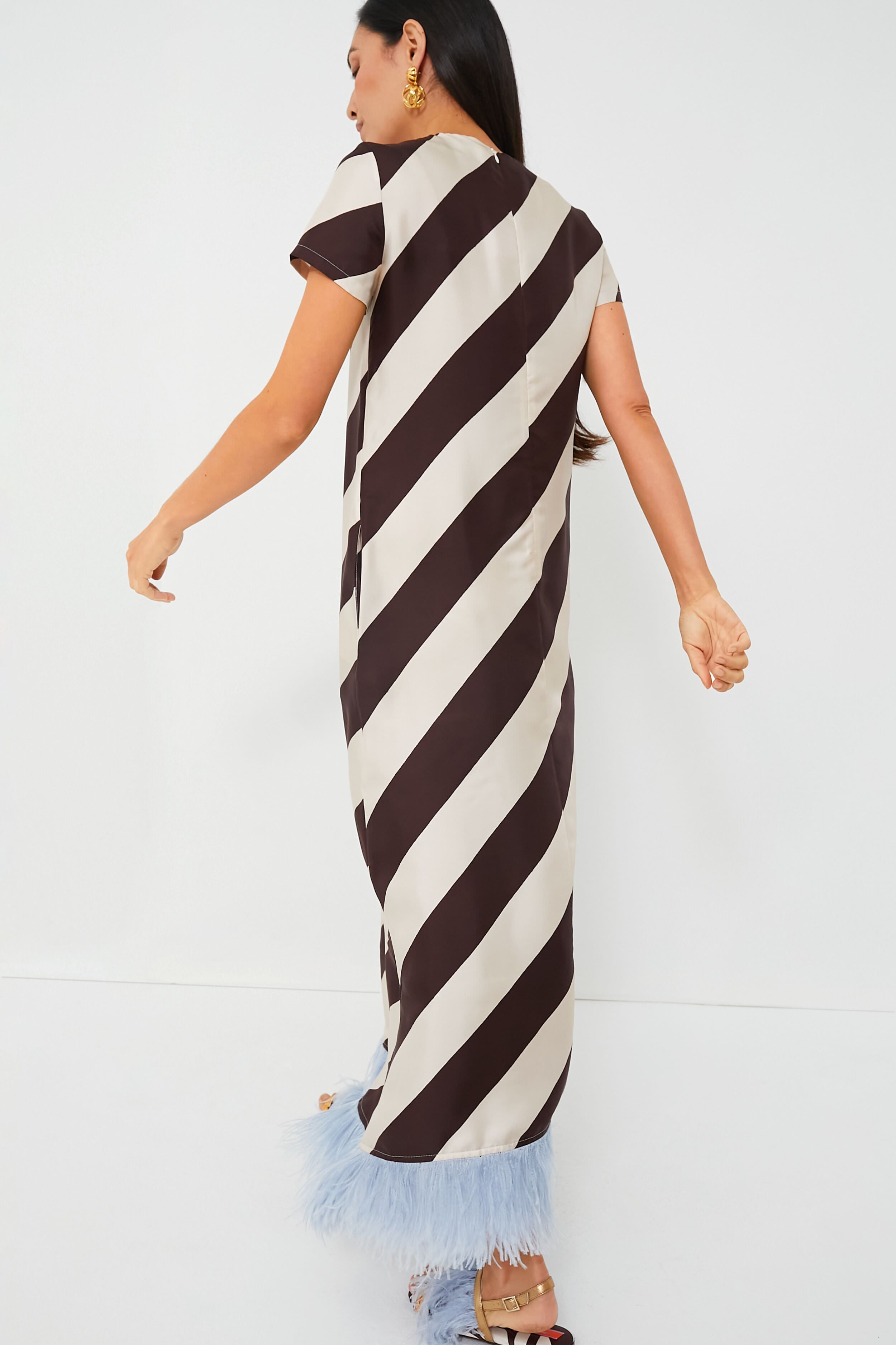 The easiest of silhouettes with the addition of several special touches. the Veneziana Swing Dress is everything and more. Cut from a luxe silk twill that doesn't cling. with a flattering slim fit in the shoulders and a generous fit in the hips. this feather-trimmed and fully fabulous maxi is a must-have. Pair with heels and a clutch for parties and special occasions of all kinds — now add this breathtaking style to your cart. we know you want to!