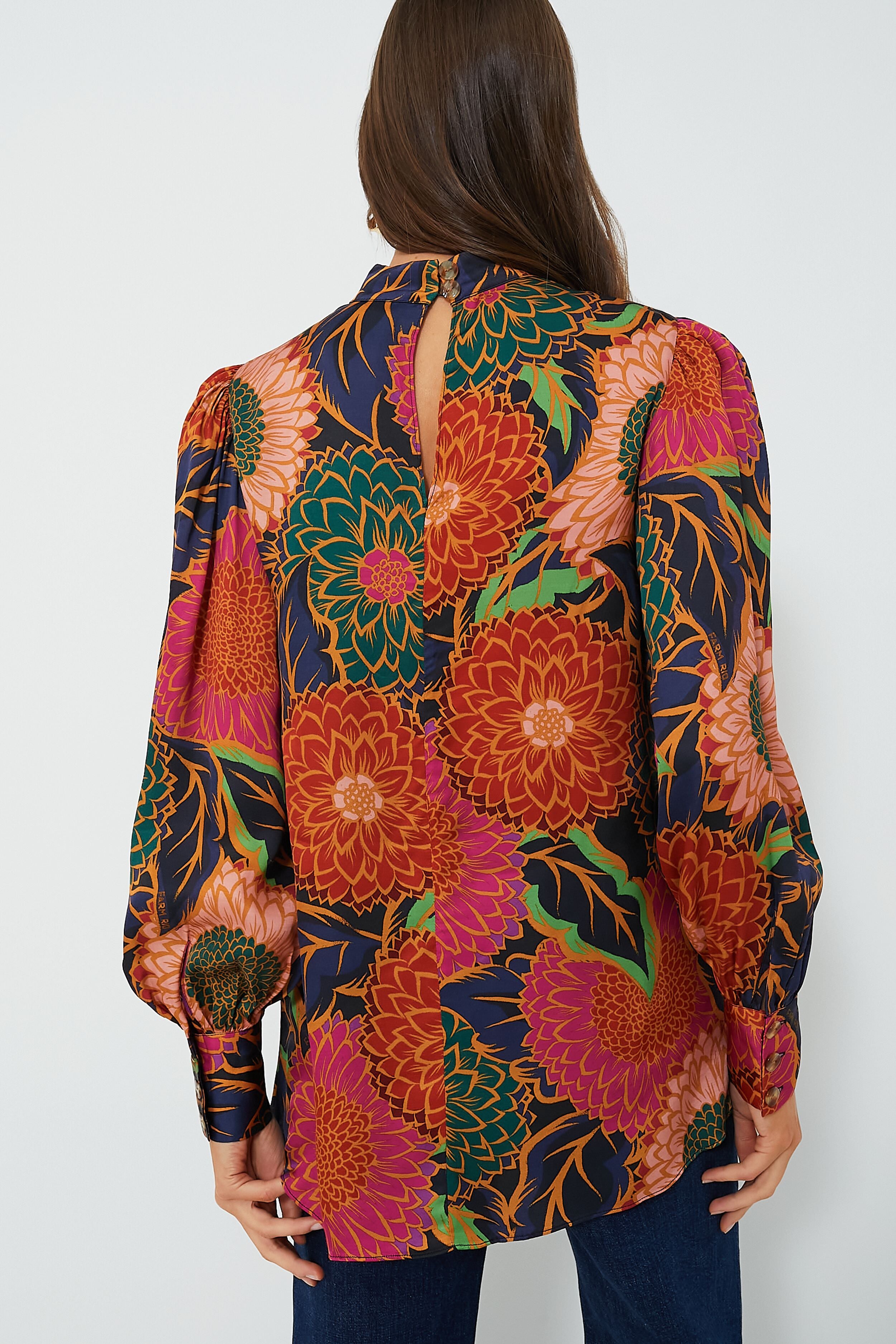 Let the Vintage Garden Multicolor Satin Blouse serve as a reminder that getting dressed should be joyous. Adorned with fabulously bright florals. this breezy top features an elegant silhouette with a mock neckline and balloon sleeves to balance out the bold. Tuck it into flared denim and add chunky heels for a retro-inspired look. or take things up a notch with a mini skirt and knee boots!