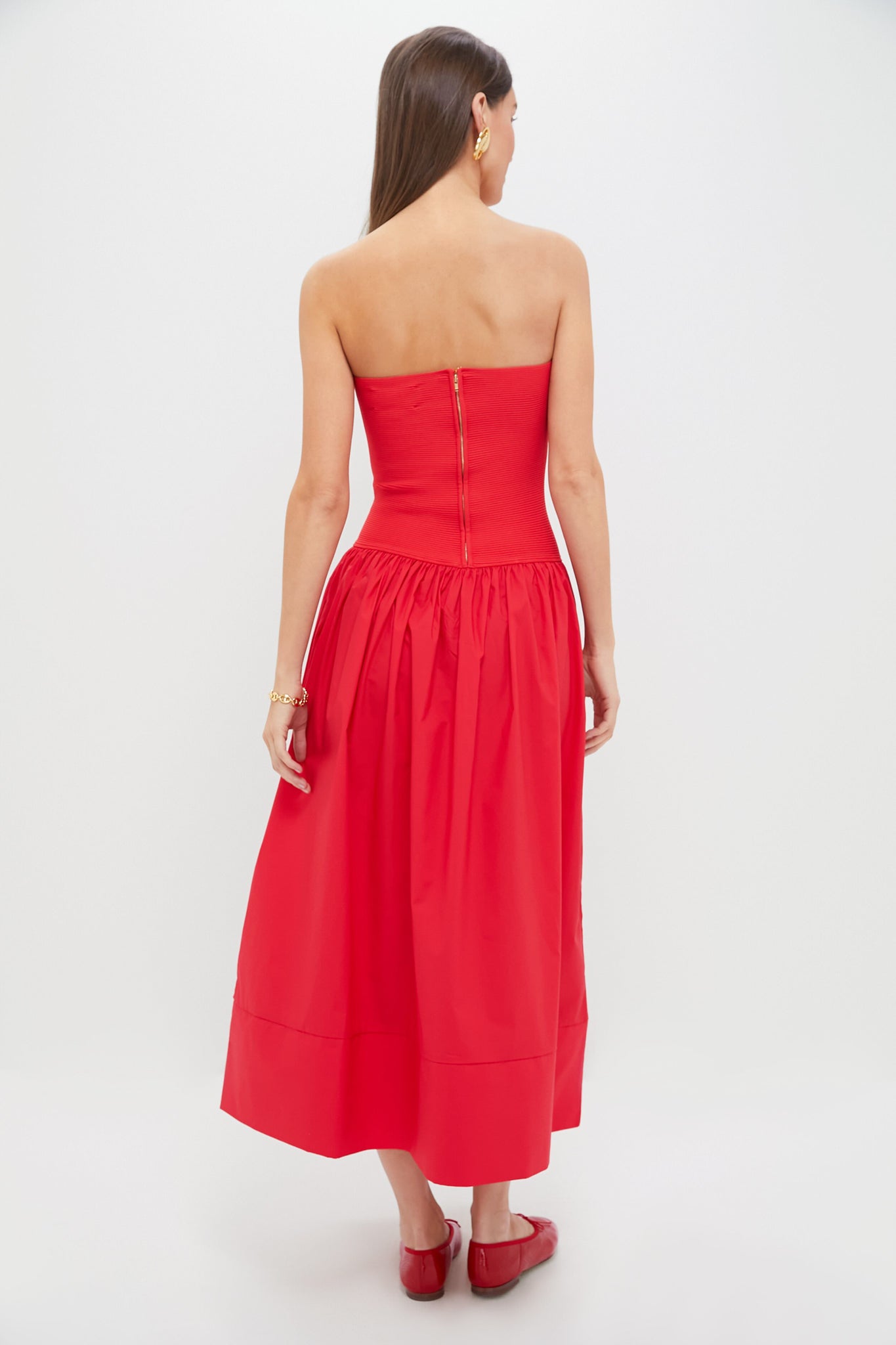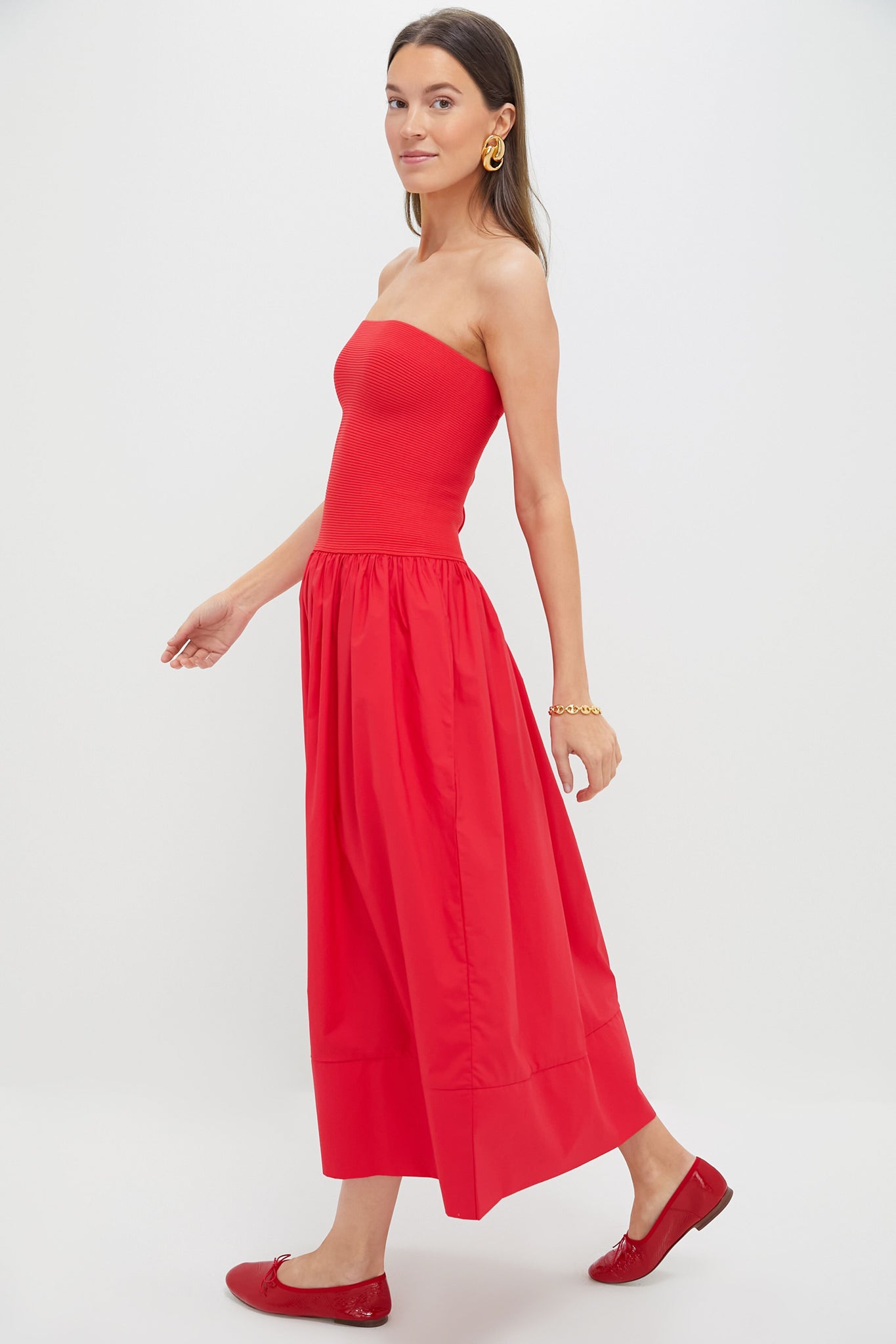 The Watermelon Glasbury Dress features a sleek knit tube and a voluminous gathered skirt for a touch of drama. Designed for effortless elegance. its silhouette transitions seamlessly from daytime luncheons to evening parties. Pair with strappy heels and gold earrings to let this striking piece steal the spotlight!