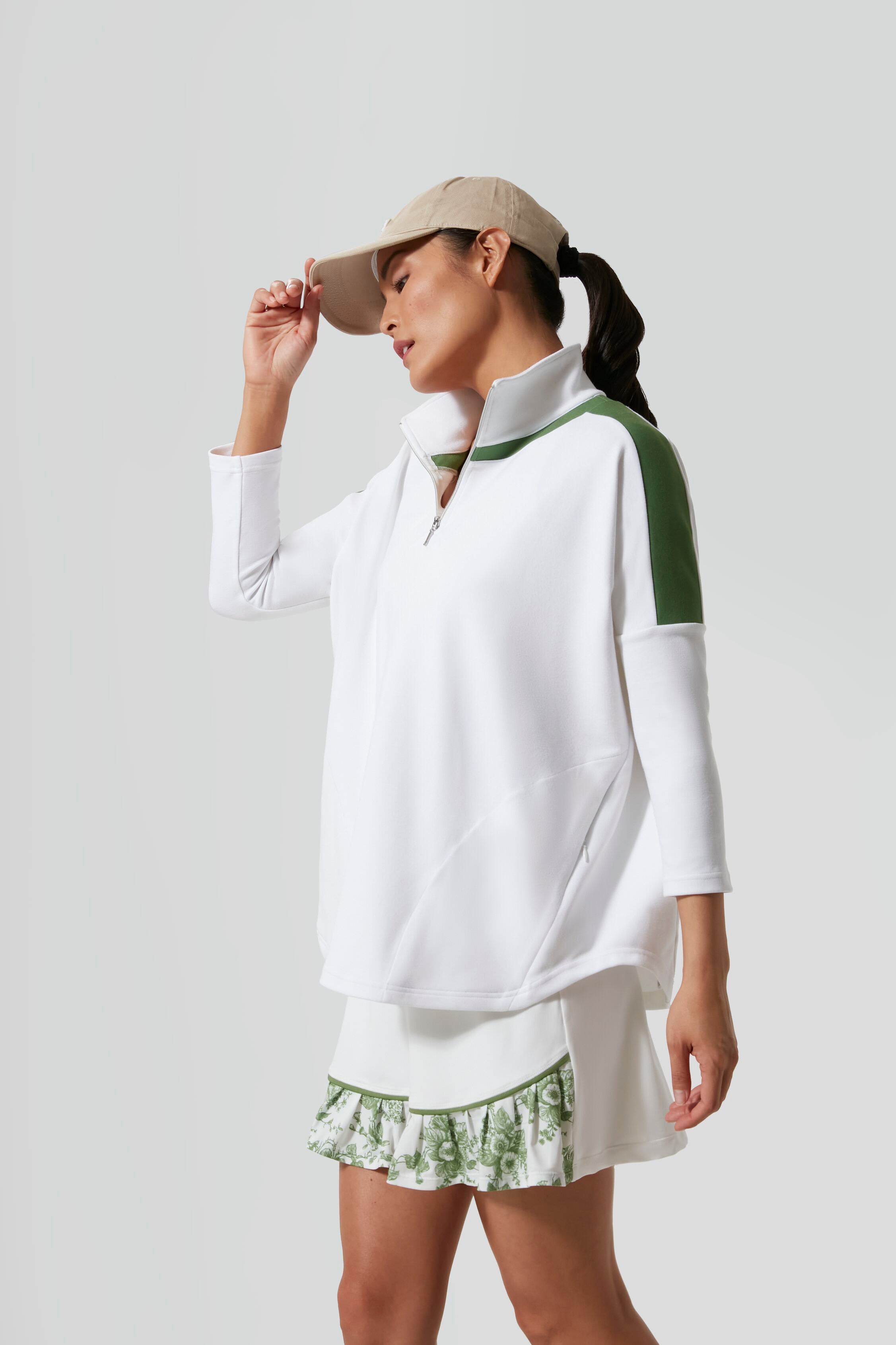 Have an elegant and classic look in the Amelie Quarter Zip! Wear over a tennis dress for a chilly evening or pair with a tennis skirt to head to the club.