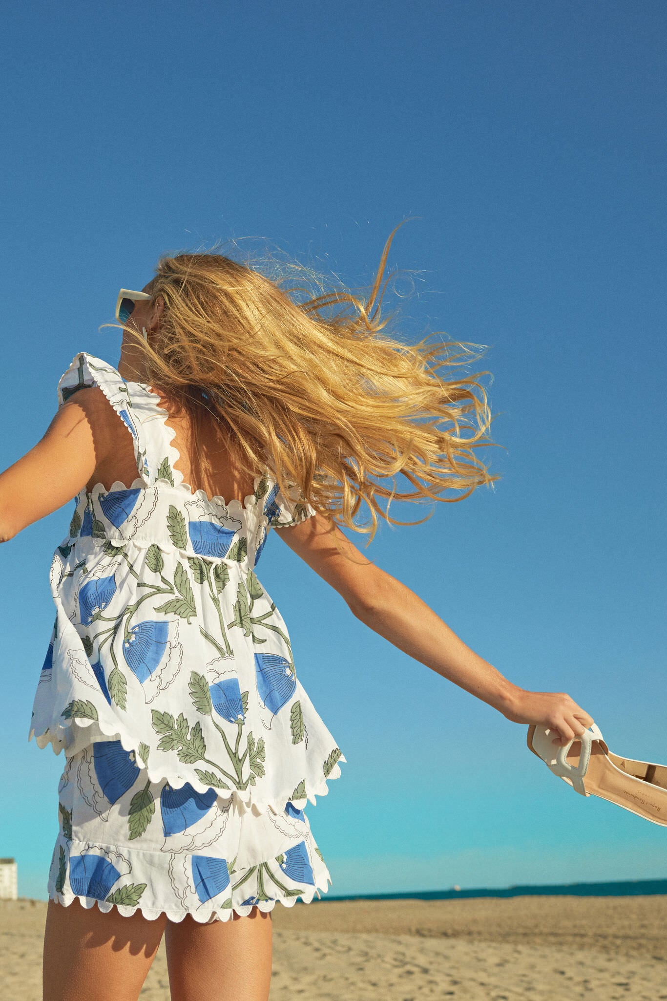 Other half of our new favorite set. meet the White and Klein Blue High Waist Shorts. Cut from organic cotton with bellflower blockprint. this style features a high waist finished with scallop trim. Perfect for springtime days. pair it with the matching White and Klein Blue Baby Doll Top for a fun alternative to a sundress or wear it with a plain white vest for a minimal yet chic look.