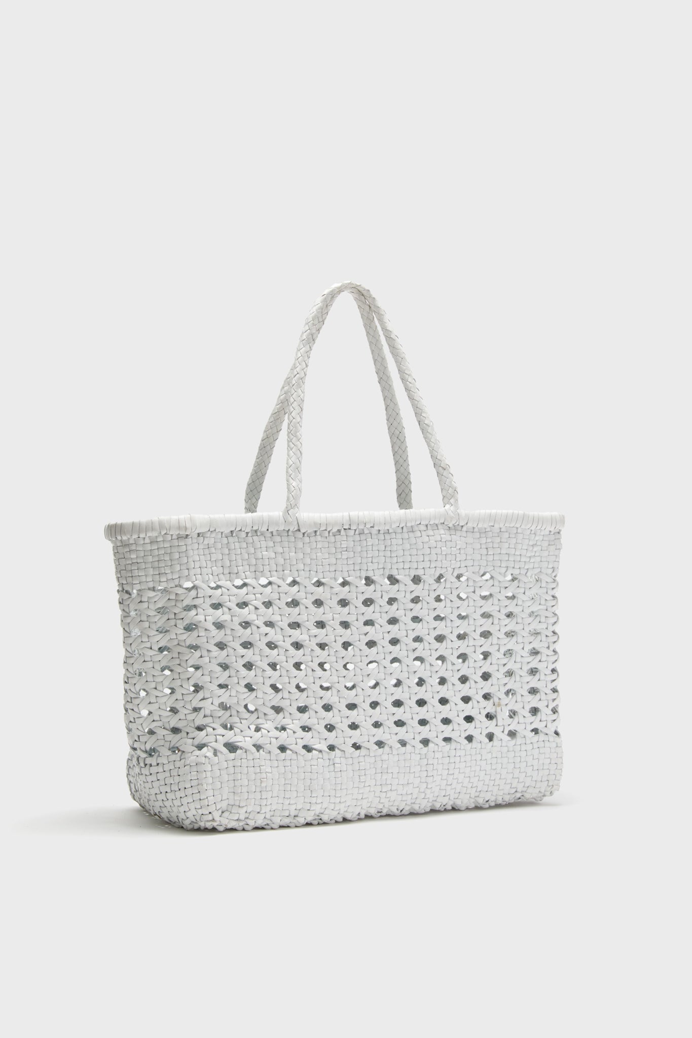 The Max Bag is an open-top basket that uses the classic cannage weave made famous by Michael Thonet and his classic rattan 'bistro chair'. Spacious and hand-woven in a bright white hue and super smooth buffalo calf leather. the rigid box shape holds everything you need for a day out — whether you're wandering around your local farmers' market or getting some sun at the beach!