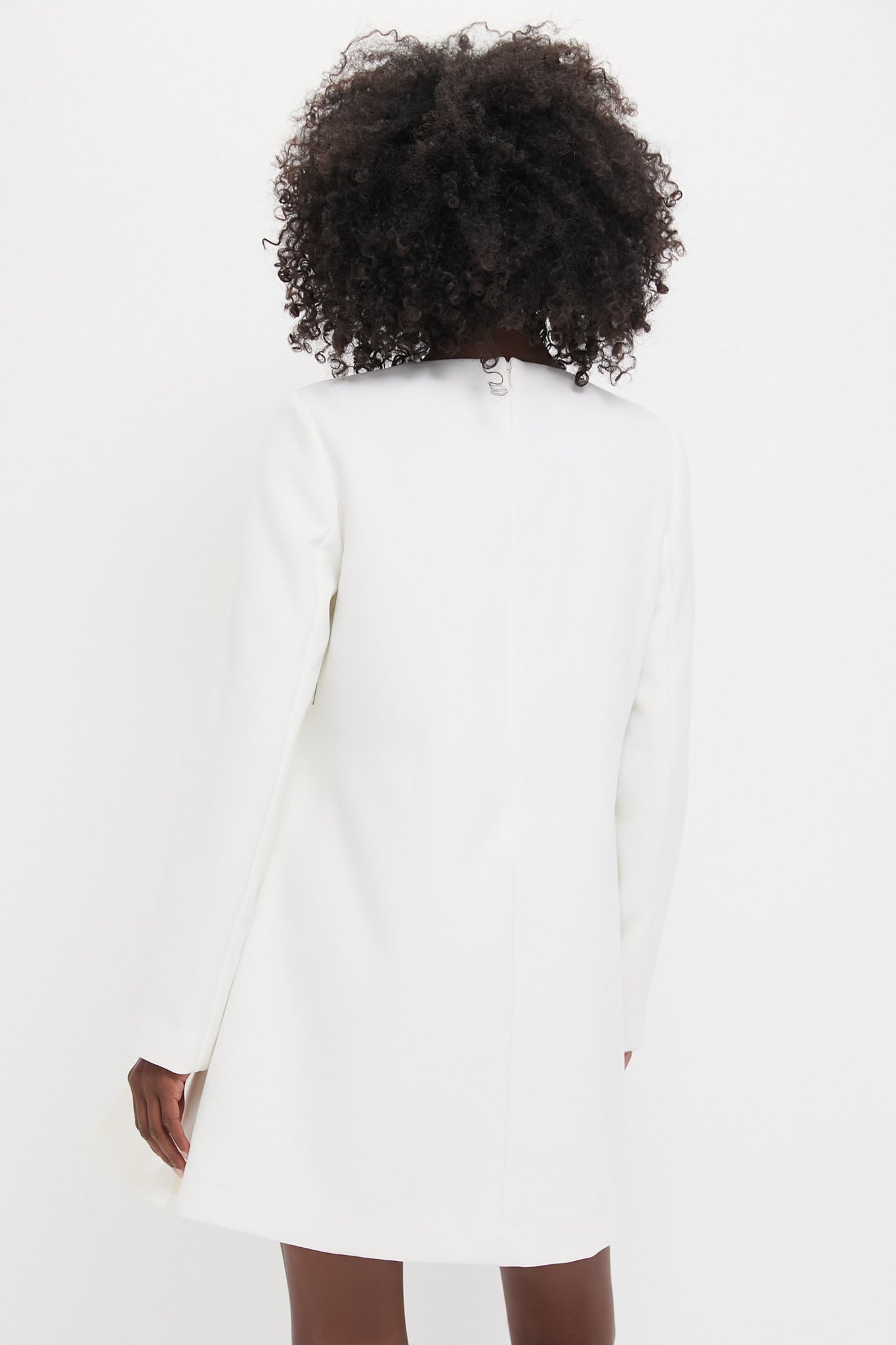 The White Crepe Blair Bow Coat Dress is a gorgeous mini to celebrate in. Featuring a mini length. bow detailing on the bodice. and flattering A-line silhouette. this dress is sure to turn heads! Pair with a heel or flat. clutch. and embellished earring for a sophisticated and stylish look!