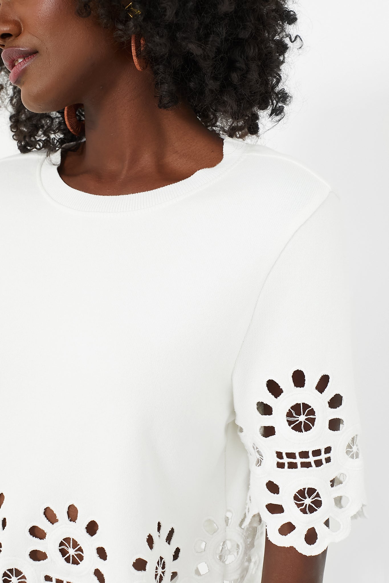 - Short sleeves with eyelet detailing