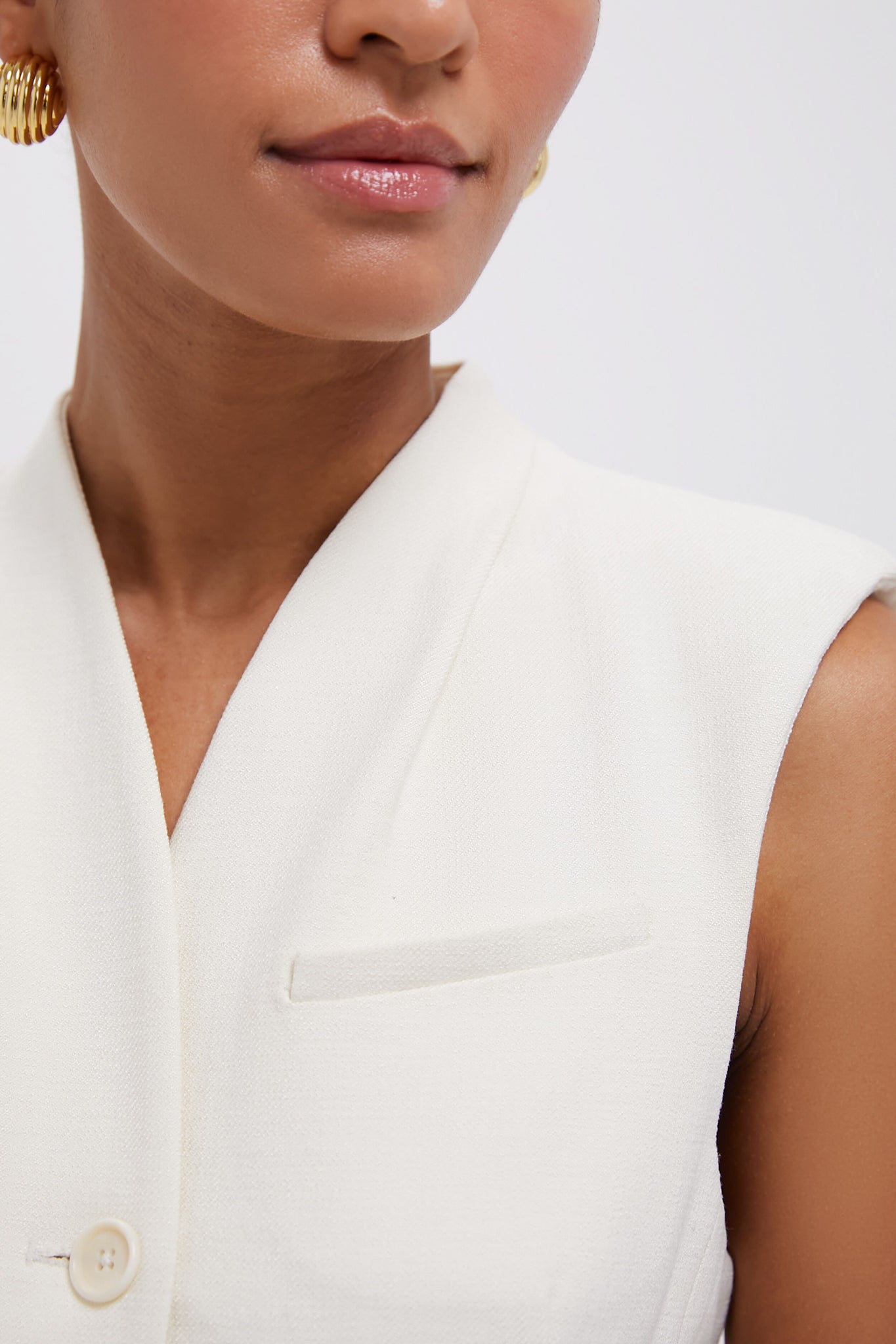 The Georgina Sleeveless Vest Midi Dress combines sleek tailoring with effortless versatility. Featuring a structured silhouette and refined detailing. it's a sophisticated layer that adapts seamlessly from season to season. We styled this piece with heels and an embellished clutch for an effortless and chic look.