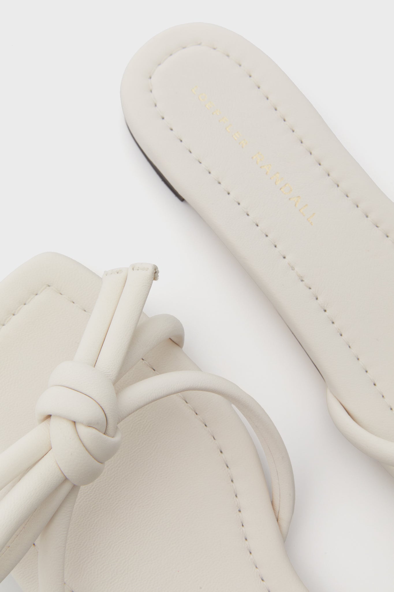 These easy. elevated White Hadley Sandals are a perfect everyday shoe for the warm-weather months. With a slide silhouette and knotted bow detail on the toe. these leather slip-ons can go with everything from maxi dresses to matching short sets.