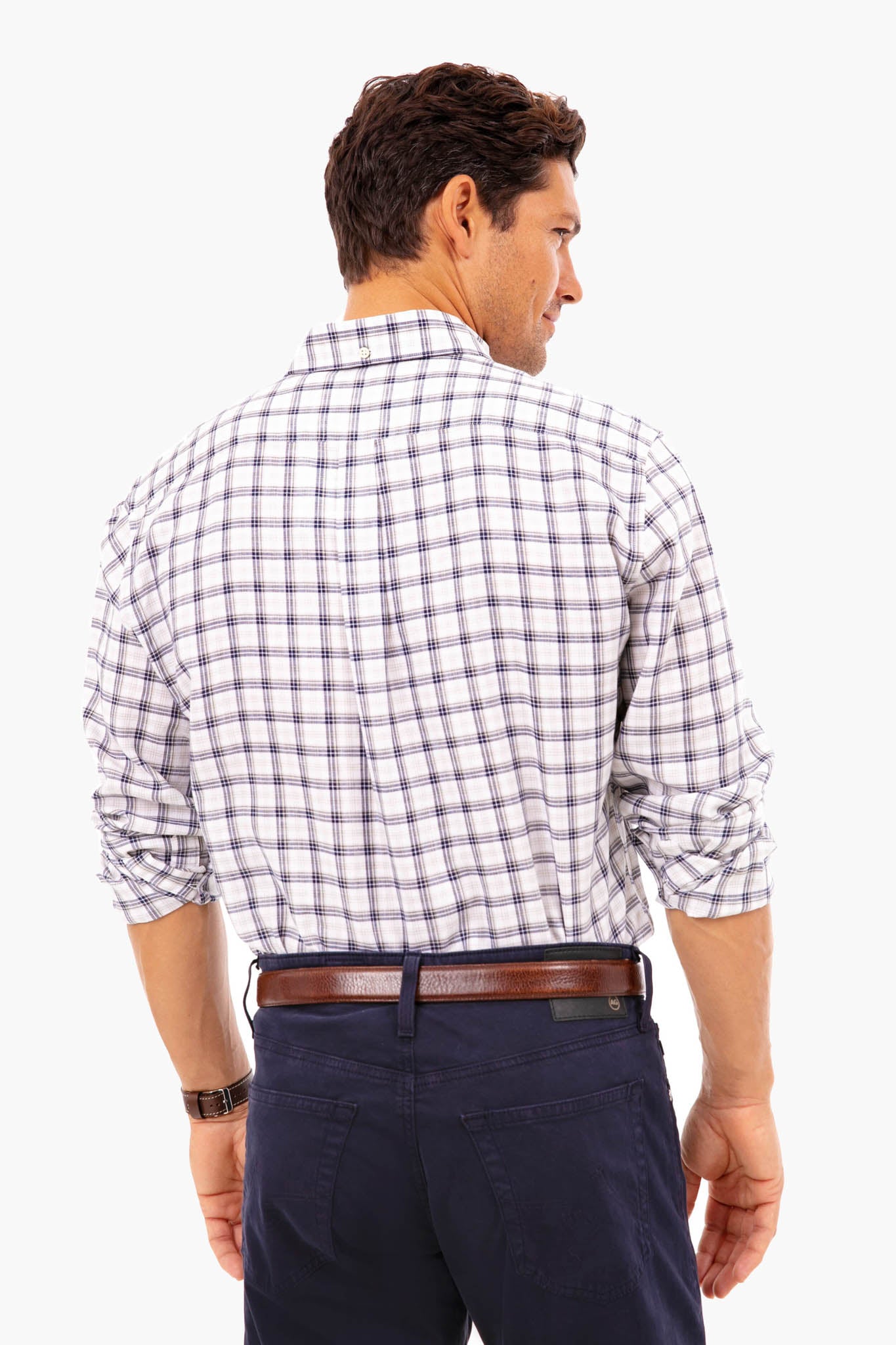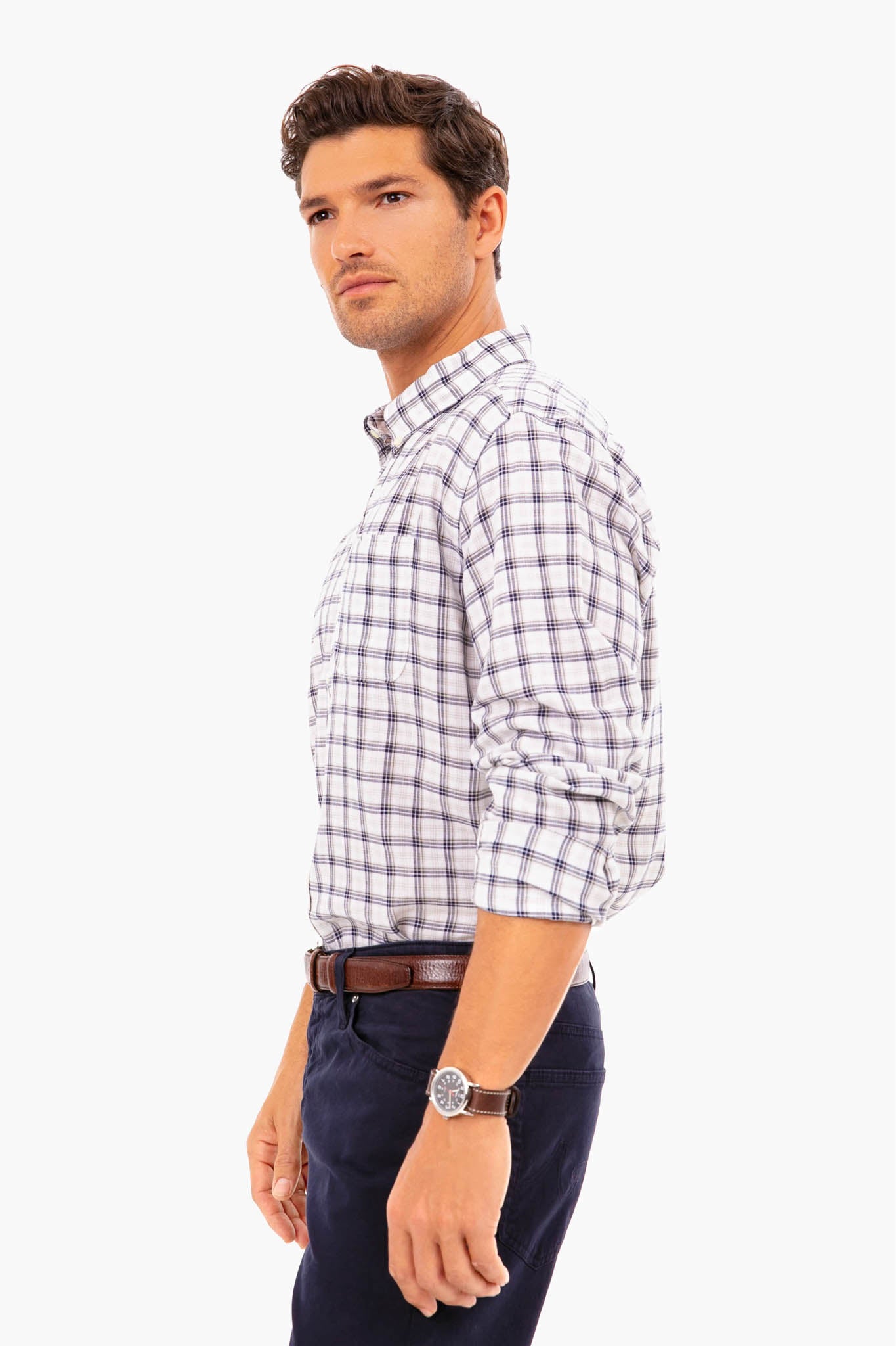 The White Helford Tailored Shirt features an all over tattersall style check in a lightweight. soft-to-the-touch blend. It is finished a left chest pocket with a Barbour logo and shield label. A versatile style. this shirt layers nicely under a sports jacket or sweater or can be worn on its own. from the office to date night.