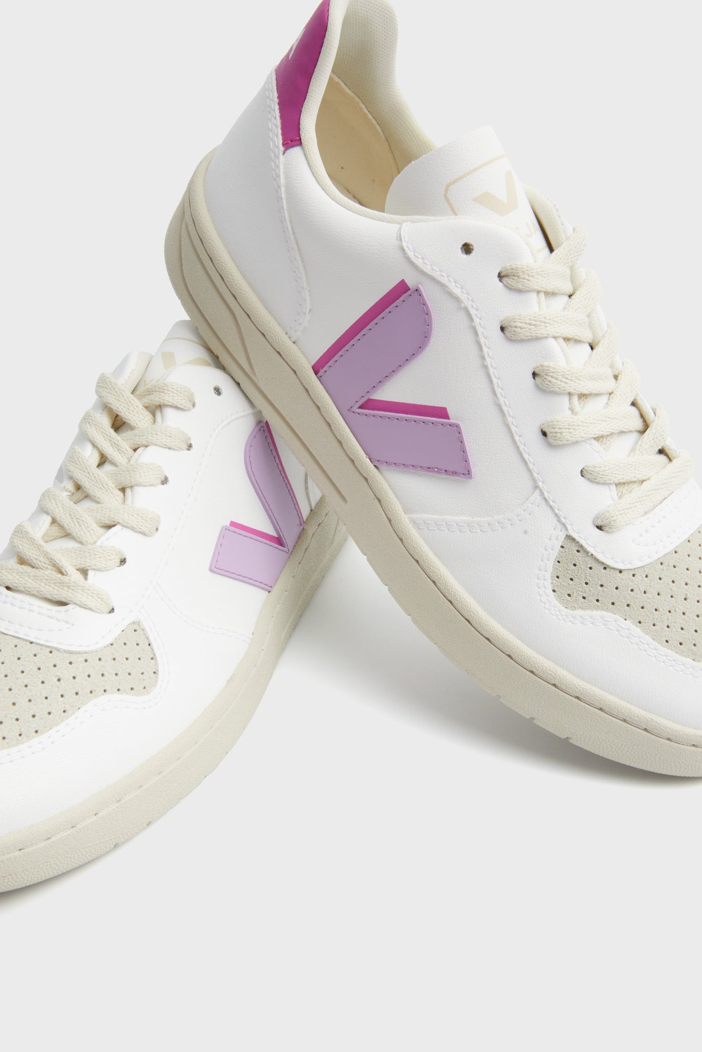 The White Orchid Ultraviolet V-10 Sneakers are the classic. seasonless shoes we are always searching for. In an ultra-comfortable silhouette with a padded collar and a thick flat sole. you will reach for these to complete nearly any outfit. Suede overlay details and a contrasting leather logo patch add a bit of contrast to the everyday. making these an absolute must-have. Pair with denim and a tee for an easy off-duty weekend look. or with a day dress for a fun brunch style.
