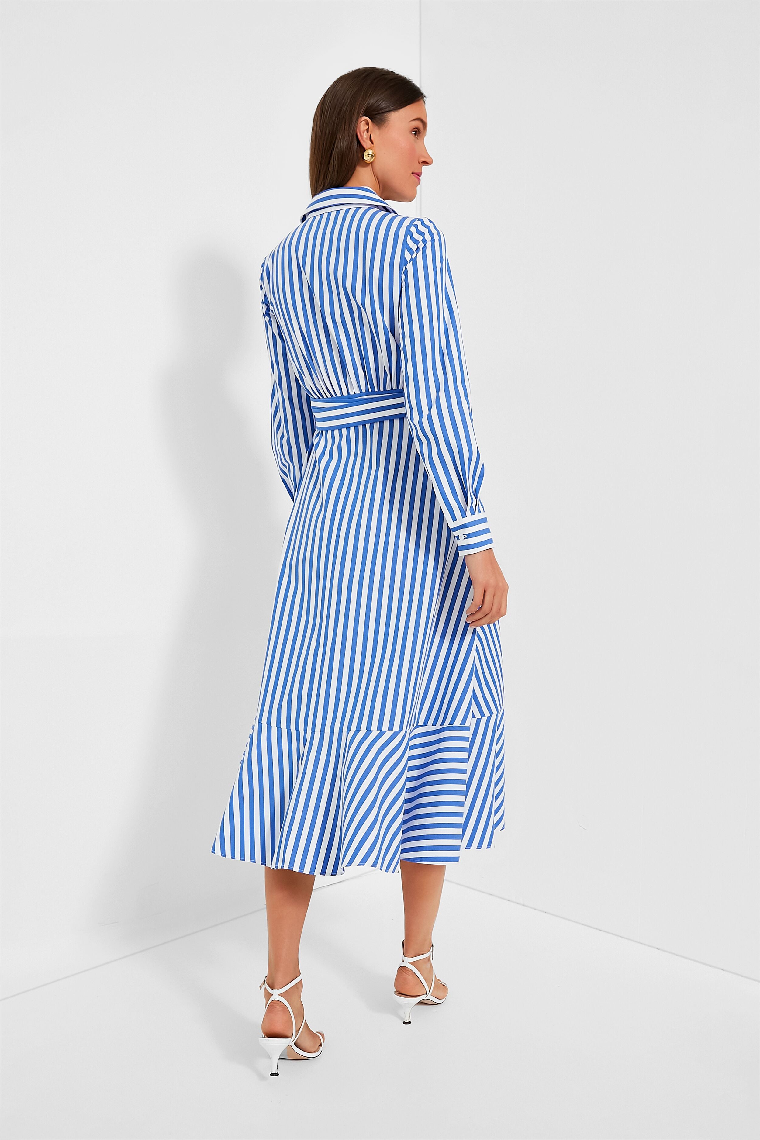 Get dressed in a flash with the Wild Blue Iris and Fresh White Julia Stripe Wrap Dress. Made from lightweight striped poplin. this easy. breezy number features surplice neckline. self-tie waist belt. pretty ruffle accents which instantly make us love it more. and slits up the hem that promote effortless movement. Made for slipping into any event or soiree. this beauty just needs to be paired with some heels and a clutch for a complete look!