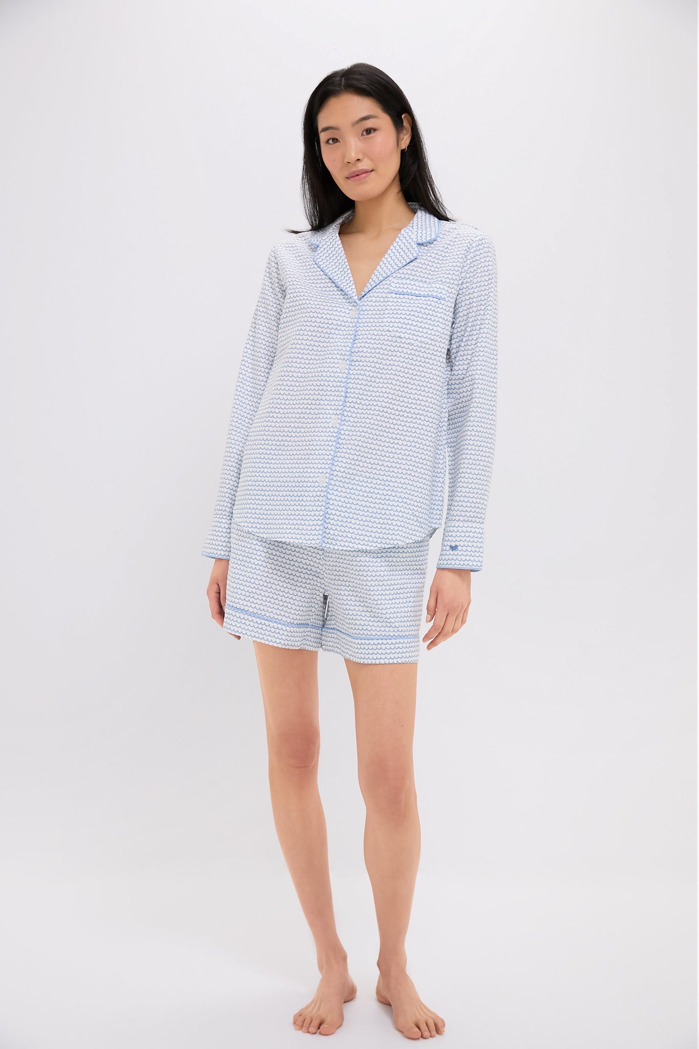 The La Mer Long Sleeve Short Set are adorable and oh-so-classic. These long sleeve pajamas feature a notch collar. front chest pocket. and pattern that reminds us of the ocean. The drawstring shorts allow for perfect fit. and the incredibly soft cotton will make these a sleepwear favorite.
